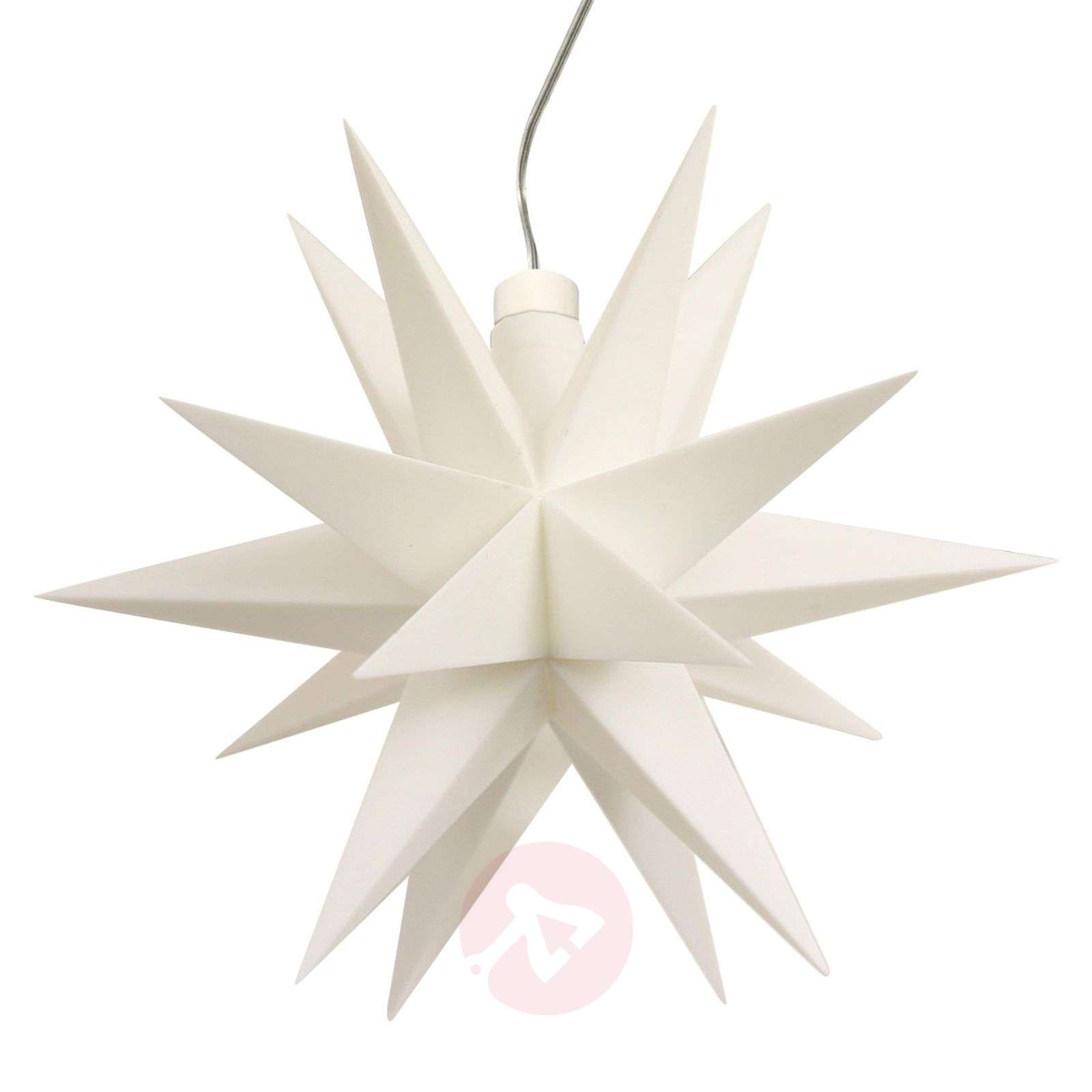 Zasilana baterią 18-ramienna gwiazda LED dla nastrojowej dekoracji wnętrza Patrząc na tę piękną 18-ramienną gwiazdę z tworzywa - jako ozdobę przed oknem lub powieszoną swobodnie w pokoju - oczekiwanie na Boże Narodzenie wzrasta. Gwiazda dekoracyjna oświetlona jest diodami LED, których światło w niezwykły sposób podkreśla nadzwyczajny kształt wielu ramion. Do dostarczonej komory baterii można włożyć trzy baterie AA. Odpowiednie baterie dostępne są oddzielnie w dziale „Akcesoria dodatkowe”. - wyposażona w programator czasowy - przewód zasilający transparentny