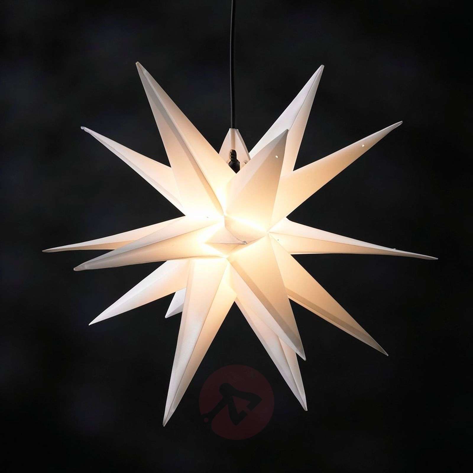 Gwiazda z tworzywa sztucznego 18-ramienna w rozmiarze XL - piękna dekoracja świąteczna na zewnątrz Ta duża gwiazda z tworzywa sztucznego łączy w sobie wszystko, co tworzy atrakcyjne akcesorium dekoracyjne: wymagający design, w połączeniu z pięknym kształtem i kolorystyką. Poza tym ta 18-ramienna gwiazda dzięki wyposażeniu wg stopnia ochrony IP44 jest zabezpieczona przed pryskającą wodą, co umożliwia jej proste stosowanie na zewnątrz - np. po zewnętrznej stronie okien jak również na balkonie lub na tarasie. Dzięki średnicy 60 cm nie można przeoczyć tej pięknej przedświątecznej dekoracji. - przewód prądowy 4 m na zewnątrz Klasa efektywności energetycznej: A++