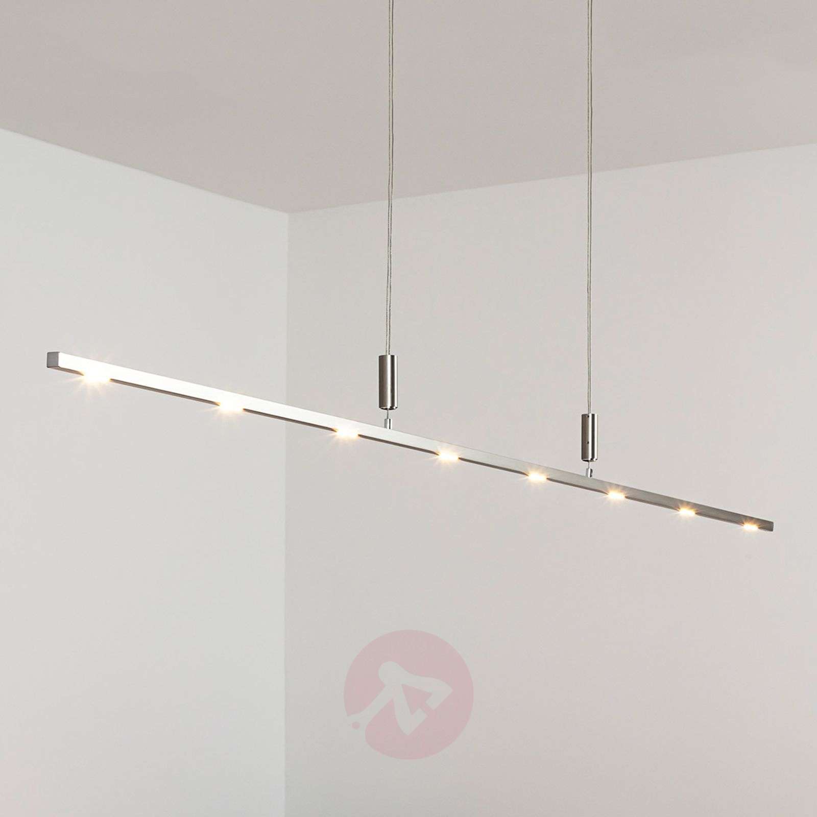 Ściemniana lampa wisząca LED TOLU z ruchomym podwieszeniem dająca ciepłe białe światło – Made in Germany Wąska lampa wisząca LED TOLU została wykonana z wysokiej jakości materiałów, ale nie tylko ta cecha przemawia na jej korzyść. Swój minimalistyczny design zawdzięcza cienkiej, prostokątnej listwie pokrytej matowym niklem. Ponadto jest ściemniana (ściemniacz nie zawarty w zestawie) i posiada ruchome podwieszenie z bezstopniową regulacją wysokości, którą można łatwo dostosowywać za pomocą zaledwie dwóch palców. Lampa TOLU została wyposażona w wysokiej jakości diody LED marki Citizen, które emitują przyjemne, ciepłobiałe światło. Diody tej firmy produkowane są w Niemczech i charakteryzują się wysoką jakością zastosowanych materiałów oraz wykonania. Dane techniczne: - regulacja jasności za pomocą ściemniacza typu LEDIM lub TEDIM - barwa światła: ciepła biel 2 700 kelwinów - 8 x 4,5 W LED - regulacja wysokości w zakresie od 105 do 195 cm Klasa efektywności energetycznej: A+