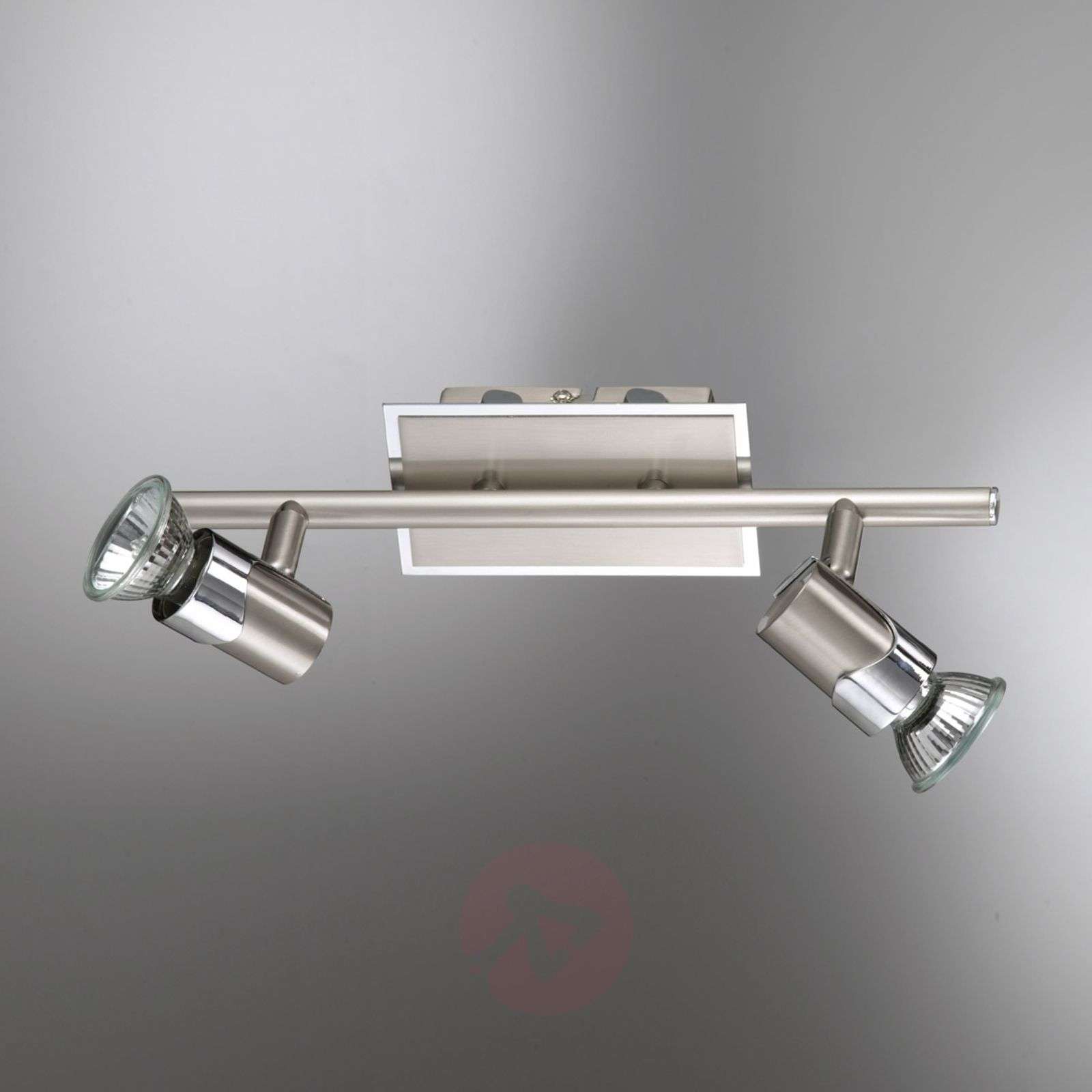 Lampa sufitowa ALICE z dwoma reflektorami Lampa ALICE szczególnie dobrze nadaje się do oświetlenia mniejszych pomieszczeń. Obrotowe reflektory sprawiają, że ciemne kąty, np. w kuchni należą już do przeszłości. Klasa efektywności energetycznej: A++