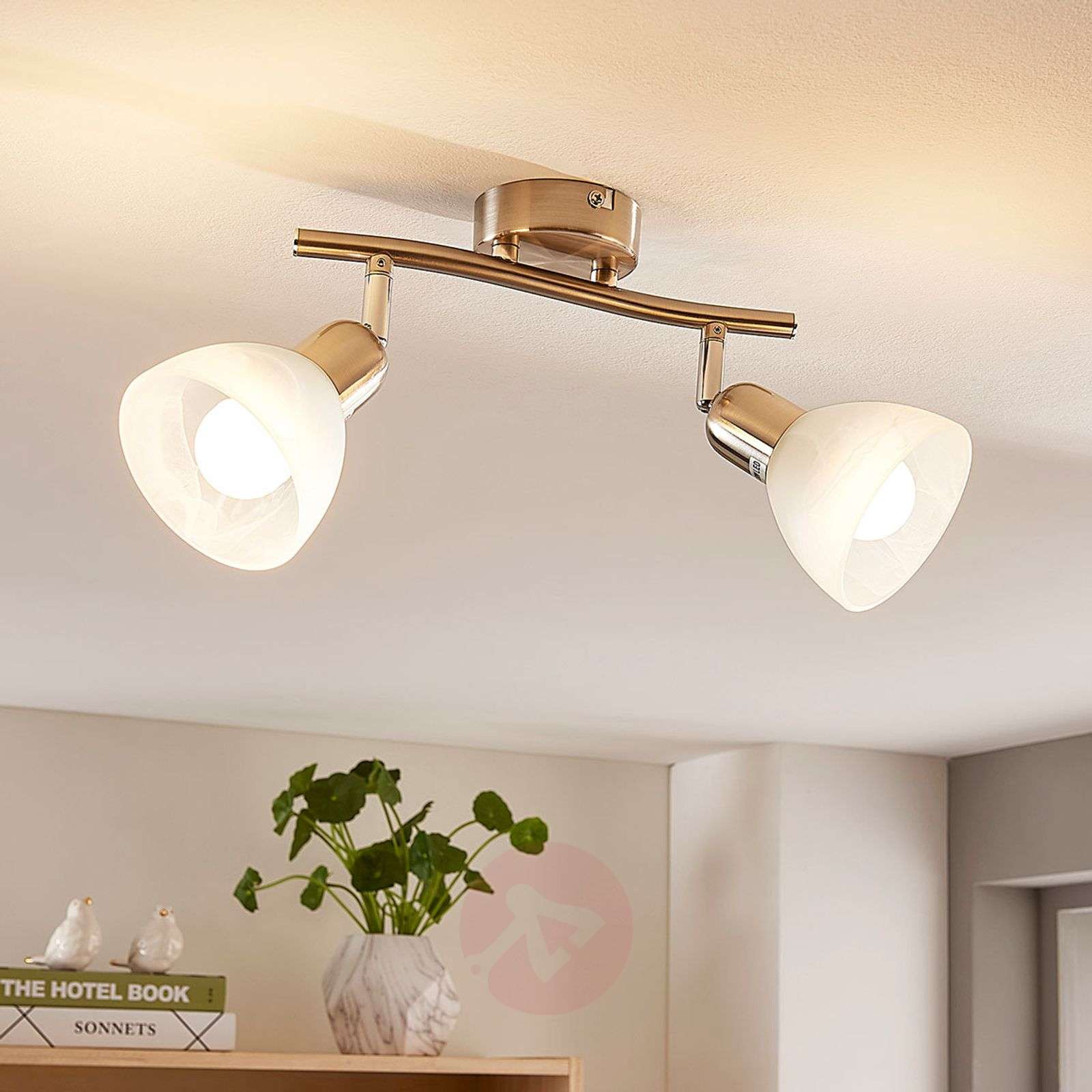 Lampa sufitowa LED Paulina z dwoma regulowanymi szklanymi kloszami Paulina ma dwa ruchome klosze z białego szkła o szlachetnym alabastrowym odcieniu. Tym samym doskonale pasuje do wnętrza mieszkalnego i sprzyja powstawaniu efektu przytulności. Dzięki ruchomym kloszom doskonale można ustawiać kierunek padania światła, obracając i odchylając elementy lampy. Żarówki E14 z technologią LED są ciepłobiałe i charakteryzują się wysoką efektywnością energetyczną, dzięki czemu lampa sufitowa Paulina podczas pracy zużywa niewiele energii elektrycznej. Tę lampę można zamontować także jako lampę ścienną. Klasa efektywności energetycznej: A+