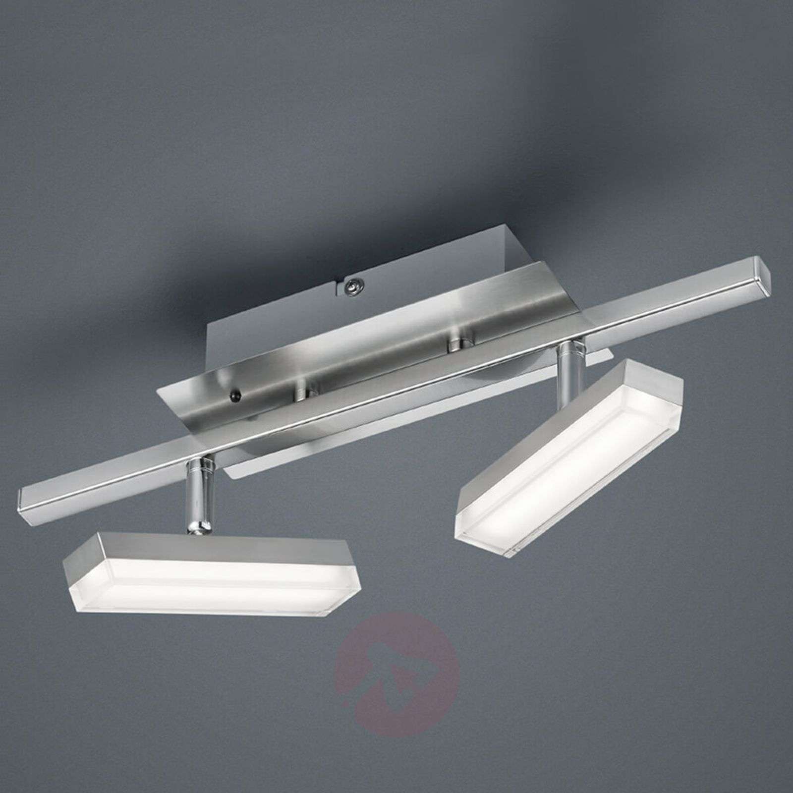 Tworzy wyjątkową atmosferę świetlną w pomieszczeniu: lampa sufitowa LED Bondy z pilotem umożliwiającym regulację światła 2-punktowa lampa sufitowa LED Bondy ma bardzo nowoczesny design. Jest również wyposażona w najnowszą technologię LED, która zapewnia zarówno białe, jak i kolorowe oświetlenie. Dwa prostokątne akrylowe korpusy, które można dowolnie obracać i odchylać, emitują najróżniejsze odcienie światła, tworząc w pomieszczeniu wyjątkową atmosferę świetlną. Dostarczony w zestawie pilot umożliwia zmianę barwy światła zintegrowanych diod LED RGB, oferuje także inne możliwości ustawień. Klasa efektywności energetycznej: A+