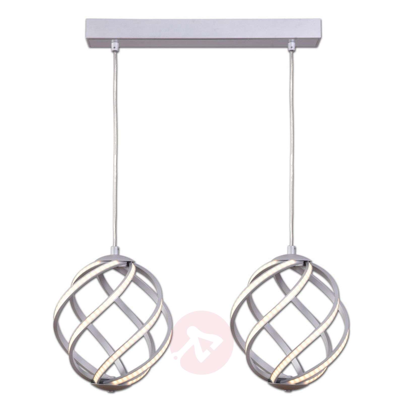 Umiejętnie poskręcana – lampa wisząca LED Twist 2-punktowa lampa wisząca LED Twist przekonuje nowoczesną elegancją i pięknem: wąskie metalowe pręty umiejętnie skręcają się i wyginają, tworząc na końcu kształtny klosz. Diody LED są umieszczone za odpowiednimi dyfuzorami po zewnętrznej stronie metalowych prętów i emitują do pomieszczenia nieoślepiające światło w odcieniu ciepłej bieli. Tak wyposażona lampa wisząca LED Twist może w każdej sprawdzić się na przykład jako oświetlenie ogólne w salonie lub jako nowoczesne oświetlenie nad stołem jadalnym. Dzięki nowoczesnemu designowi doskonale komponuje się z wieloma różnymi stylami wyposażenia wnętrz. Lampę wiszącą LED można ściemniać wyłącznie za pomocą odpowiedniego pilota, który wchodzi w zakres dostawy. Klasa efektywności energetycznej: A+