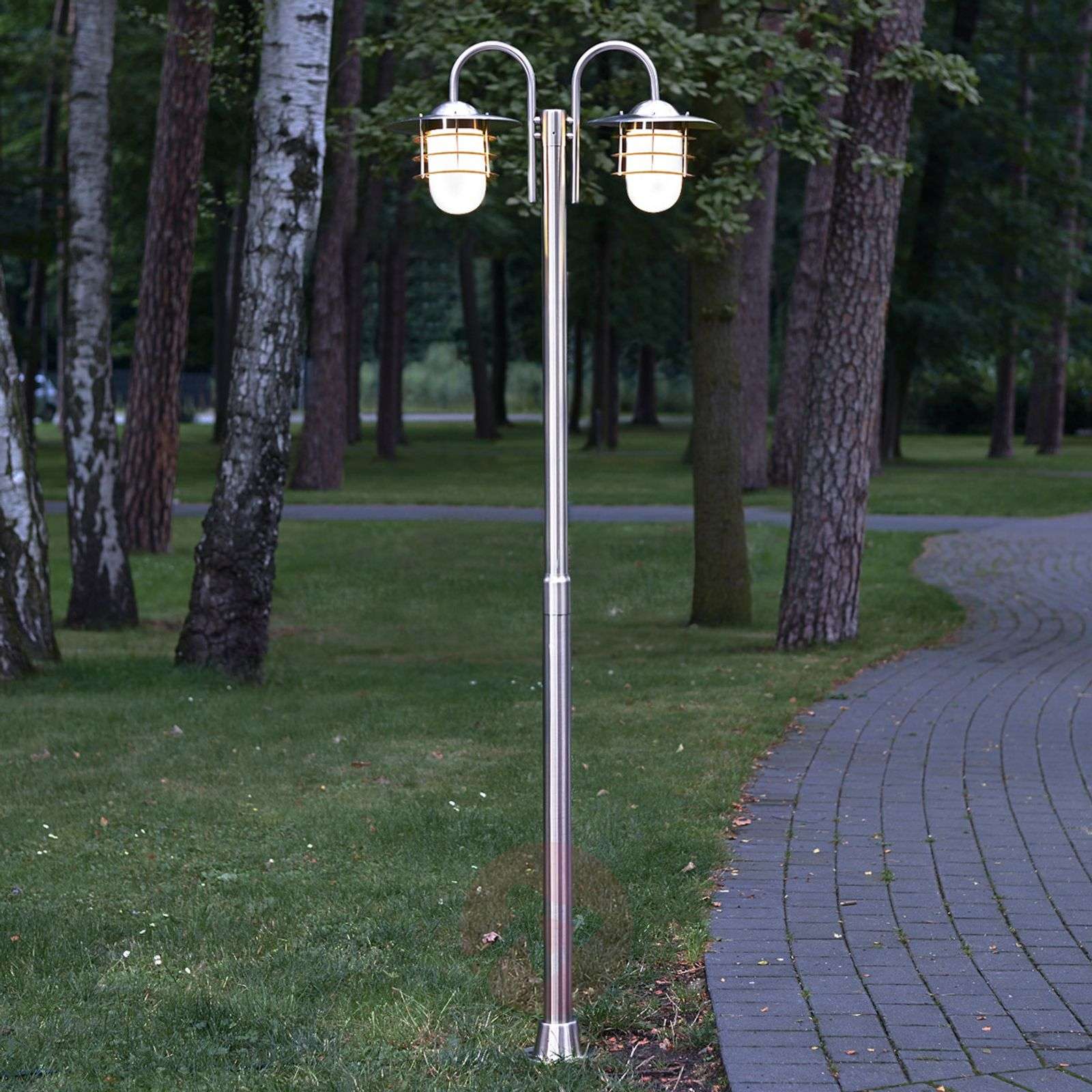 Latarnia ze stali szlachetnej Mian o dekoracyjnym wyglądzie Mian składa się z elementów ze stali szlachetnej i klosza, który chroni żarówkę przed wniknięciem brudu i wody. W ten sposób powstaje przyjemny i piękny obiekt, który w każdym nowoczesnym otoczeniu robi wrażenie. Stal szlachetna jako materiał jest trwała, tak że warunki pogodowe różnych pór roku tylko w niewielkim stopniu mogą zaszkodzić temu materiałowi. To źródło światła do przestrzeni zewnętrznej, które można wyposażyć w dowolną żarówkę, ponieważ oprawka E27 umożliwia nie tylko zastosowanie tradycyjnych żarówek, lecz także żarówek halogenowych, energooszczędnych lub LED. Klasa efektywności energetycznej: A++