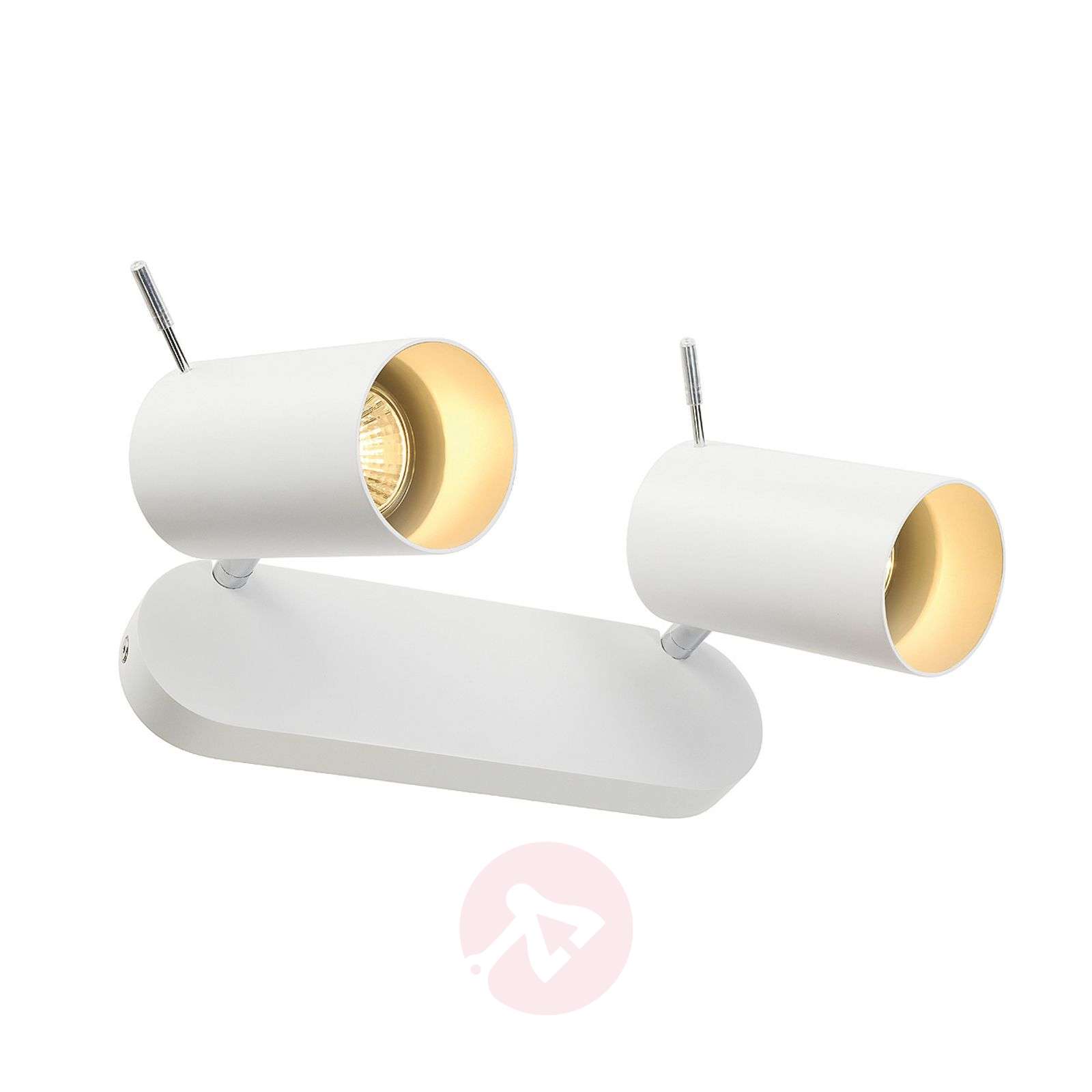 ASTO TUBE – biały dwupunktowy spot sufitowy z możliwością obracania i odchylania głowicy Umieszczony na suficie dwupunktowy spot ASTO TUBE stworzy we wnętrzu dobry nastrój. Został wykonany z wytrzymałego aluminium i składa się z trzech reflektorów o ruchomej konstrukcji umożliwiającą ich obracanie o 350° i odchylanie o 90°, dzięki czemu można dostosować padające światło do własnych potrzeb. Ponadczasowy design sprawia, że spot ASTO TUBE doskonale odnajdzie się we wnętrzach urządzonych w różnych stylach. Żarówka: 2 x 75 W GU10 (maks. Ø 6,4 cm, maks. dł. 8,1 cm). Dostawa nie obejmuje żarówek. Klasa efektywności energetycznej: A++