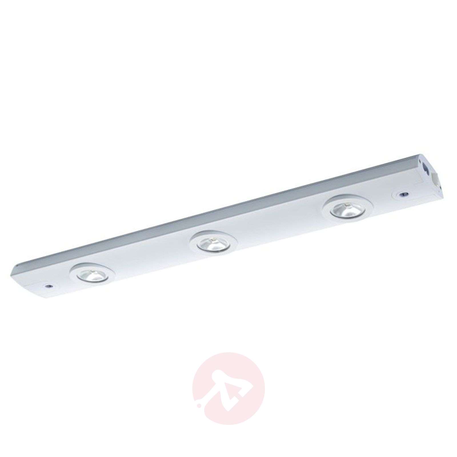 Subtelna lampa Delos z trzema spotami LED, do montażu na meblach W listwę wpuszczone są trzy niepozorne spoty LED. Ich światło rozjaśnia szafki, witryny i inne przestrzenie, ułatwiając pracę i różnorakie inne czynności. Lampa meblowa zasilana jest z przewodu o długości 1,5 metra. Z przełącznikiem kołyskowym na korpusie. Klasa efektywności energetycznej: A+