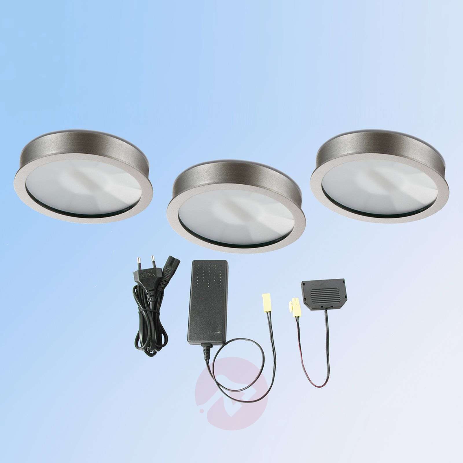 Oprawa wpuszczana LED Cubic 68 w zestawie 3-częściowym - 2.700 K Trzy uniwersalne i nadzwyczaj energooszczędne oprawy wpuszczane sufitowe LED Cubic z wąską, widoczną ramką metalową wykończoną jako matowy nikiel. Zainstalowane żarówki LED rozpraszają ciepłe białe światło o temperaturze barwnej 2.700 K. Zestaw zawiera zasilacz. Klasa efektywności energetycznej: A+