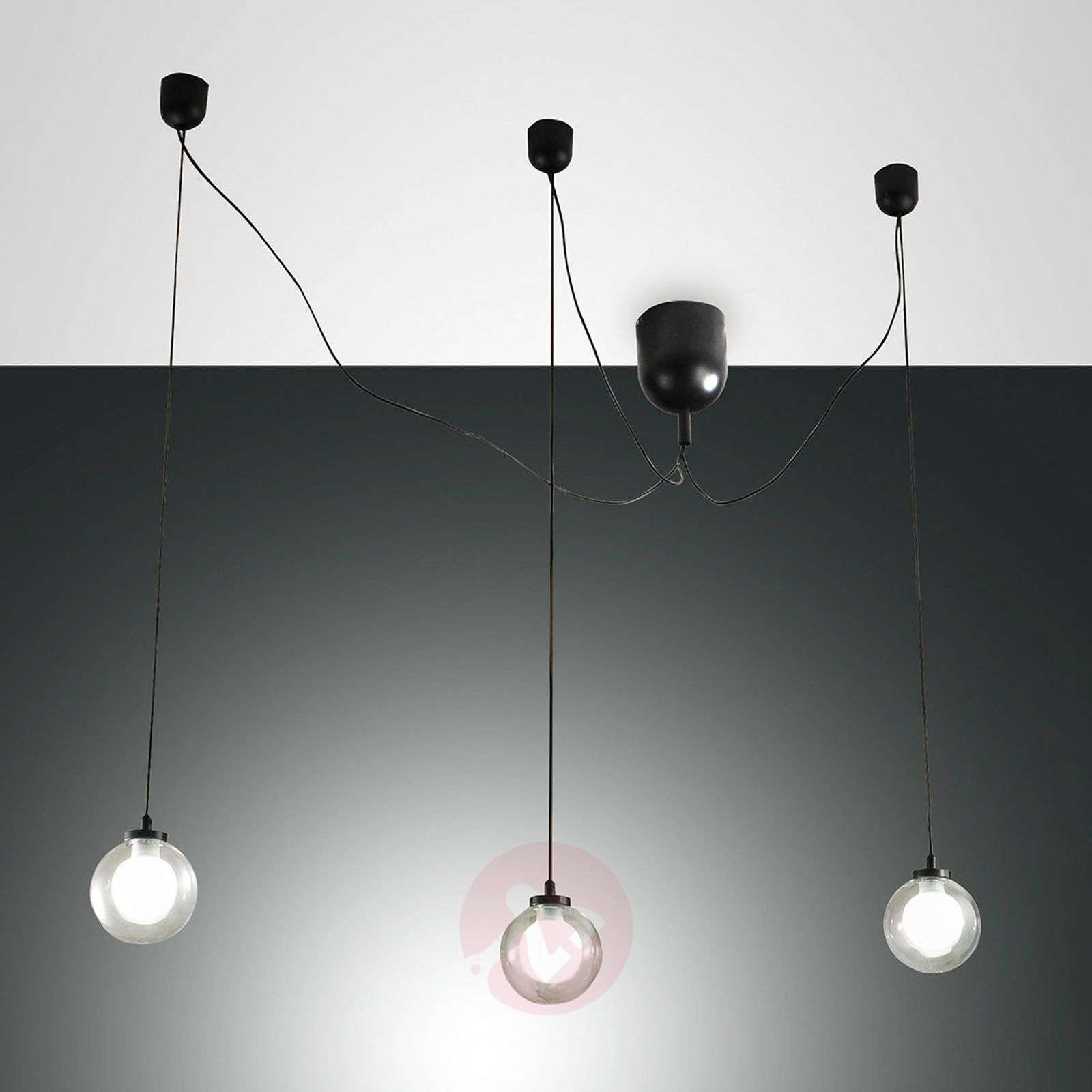 Lampa wisząca LED Blog z nasadkami do regulacji Atutem lampy wiszącej LED Blog są cztery źródła światła, które można rozwiesić na różne sposoby i na różnych wysokościach dzięki dołączonym nasadkom do regulacji długości kabla. Ponadto diody LED zapewniają ciepłe, przyjemne światło, które tworzy nastrojową atmosferę w całym pomieszczeniu. Przewody ściemnianej lampy wiszącej LED Blog zbiegają się w czarnej rozecie sufitowej. Dzięki praktycznym nasadkom do regulacji klosze tej lampy, wykonane z dmuchanego szkła, można montować na suficie na różne sposoby, oświetlając różne obszary pomieszczenia, które chce się szczególnie podkreślić – można w ten sposób uzyskać w pełni spersonalizowaną koncepcję oświetlenia, która doskonale wpisze się zarówno w styl wyposażenia wnętrza, jak i zarys pomieszczenia. Klasa efektywności energetycznej: A+