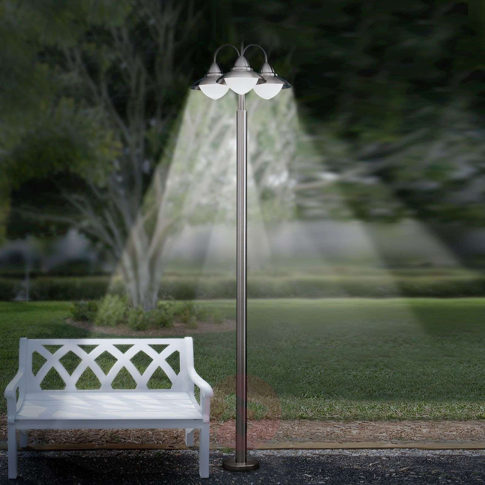 Nowoczesna, trzypunktowa lampa stojąca o formie przypominającej latarnię. Jest ona wykonana ze stali szlachetnej i szkła opalowego Klasa efektywności energetycznej: A++