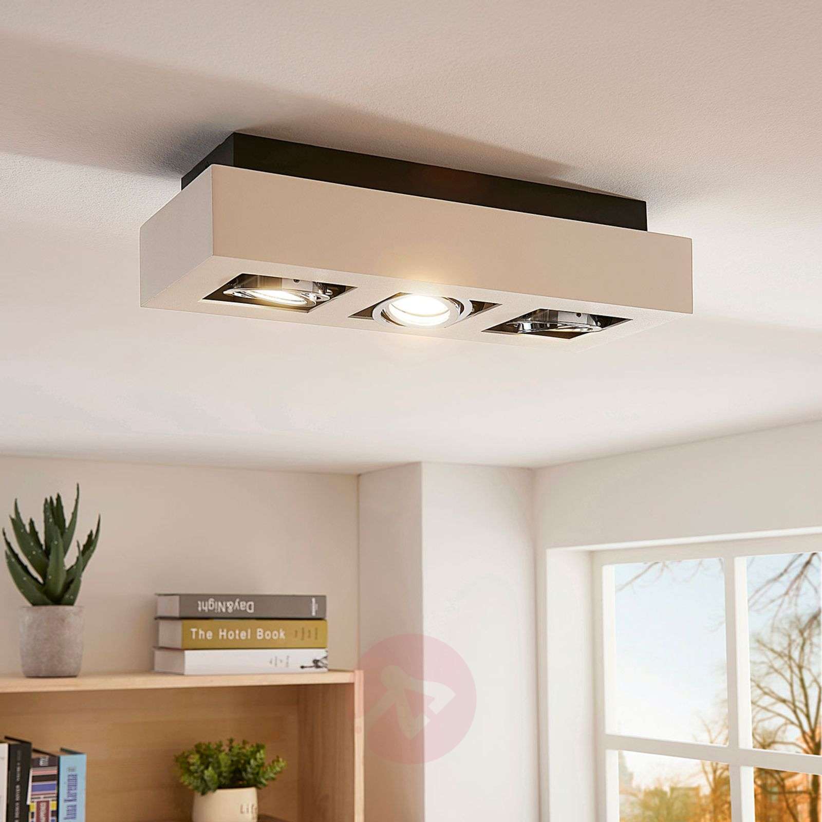 Prostokątna lampa sufitowa LED Vince o białej powierzchni i regulowanymi wstawkami Podłużna forma oraz trzy żarówki LED GU10 sprawiają, że lampa sufitowa LED VINCE sprawdzi się w wielu wnętrzach, w których zapewni mnóstwo światła. Każdą wstawkę z żarówką można dowolnie odchylać, dopasowując oświetlenie do własnych potrzeb. Pokryta białym lakierem metalowa rama nadaje całości wyjątkowo ponadczasowy charakter. Klasa efektywności energetycznej: A++