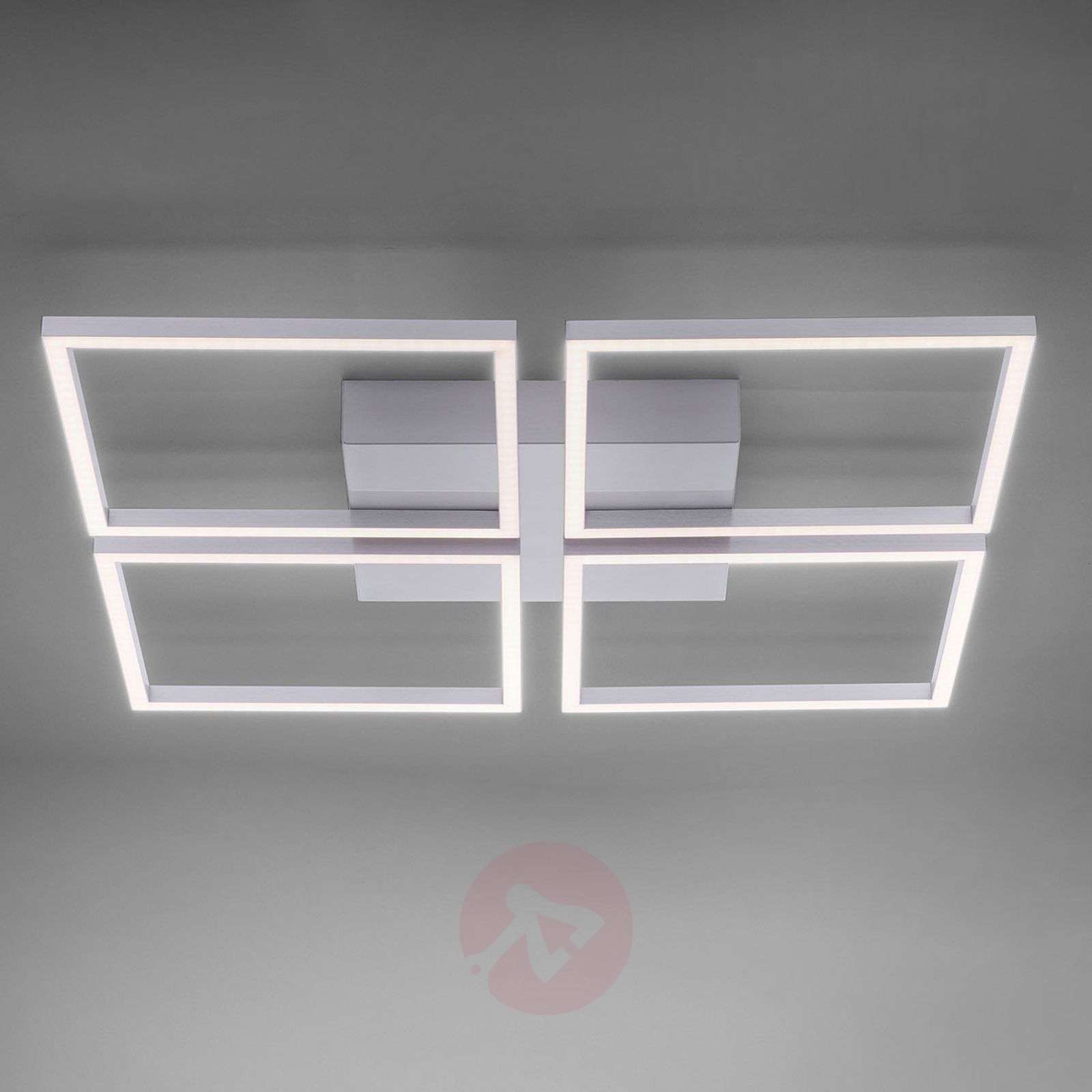 Kwadratowa lampa sufitowa LED Quadra, ściemniana z użyciem przełącznika ściennego Quadra doskonale pasuje do nowoczesnych, purystycznych wnętrz i składa się z czterech kwadratów o jednakowej wielkości, mających postać ramki, wszystkie wyposażone są w diody LED. Za pomocą zwykłego przełącznika ściennego lampa sufitowa LED może być ściemniana w sposób ciągły, gdy tylko światło zostanie wyłączone i natychmiast ponownie załączone. Powtarzanie operacji przełączania umożliwia ustawienie jasności. Zastosowane diody LED są energooszczędne i odznaczają się długą żywotnością. Klasa efektywności energetycznej: A+