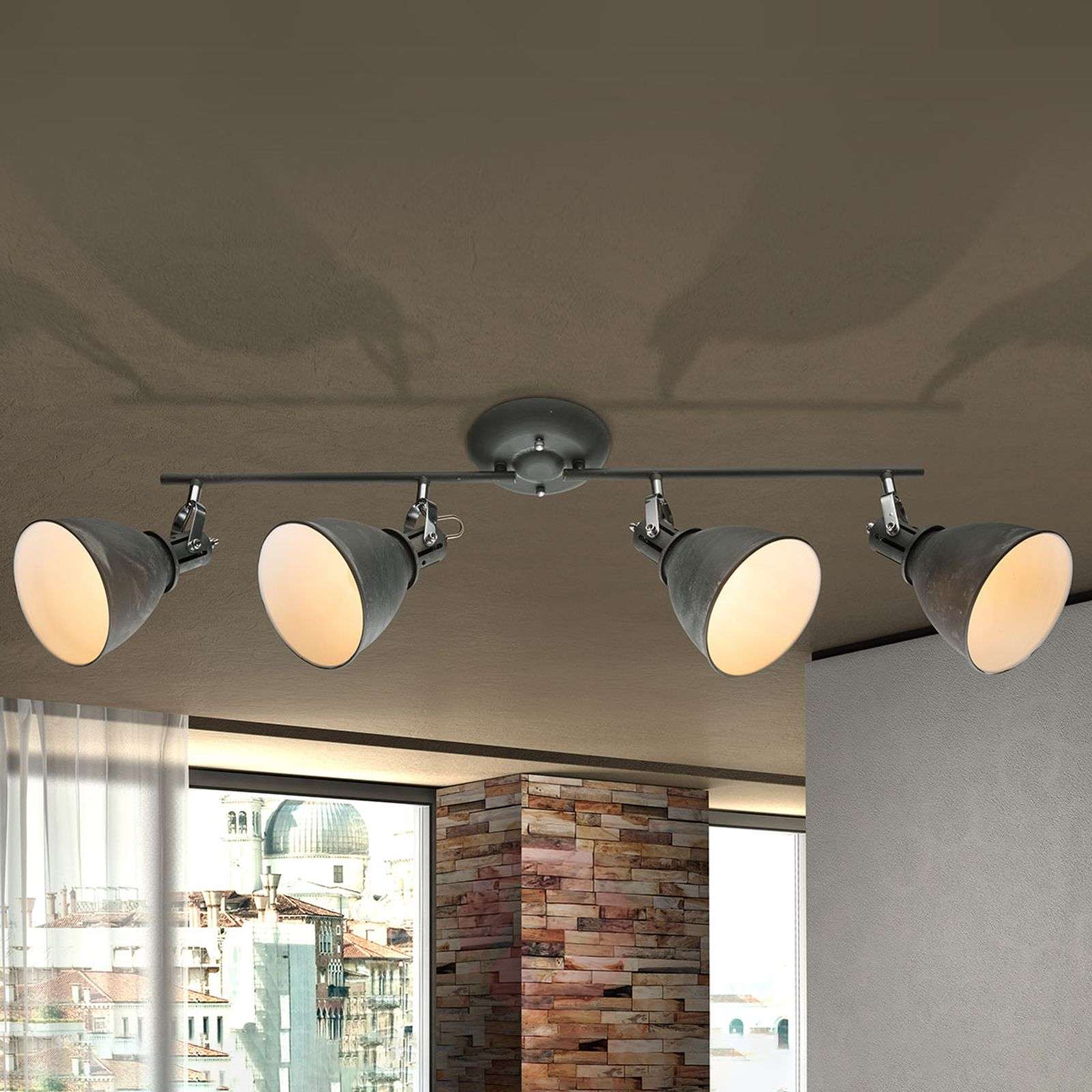 Szara lampa sufitowa Jonas z czterema metalowymi kloszami – elastyczna, funkcjonalna, elegancka Źródłem inspiracji dla projektantów tego modelu były funkcjonalne koncepcje oświetleniowe epoki industrializacji. Reflektor sufitowy Jonas zachwyca wyraźnymi liniami i stanowi praktyczne rozwiązanie oświetleniowe dla każdego pomieszczenia. Lampa ta oparta jest na surowych formach geometrycznych i umiejętnie łączy w sobie piękne zaokrąglenia z dynamicznymi liniami prostymi. Jasna biel wewnętrznych powierzchni tworzy przy tym ekscytującą przeciwwagę dla szarego koloru na zewnątrz. Klosze lampy Jonas można elastycznie regulować w zaledwie kilku ruchach, co pozwala stworzyć koncepcję oświetleniową według własnych upodobań. Ta lampa sufitowa sprawdzi się doskonale zarówno jako centralny element oświetlenia ogólnego, jak i do podświetlania określonych obszarów pomieszczenia. Lampa sufitowa Jonas wygląda równie harmonijnie w salonie, gabinecie czy na korytarzu. Klasa efektywności energetycznej: A++
