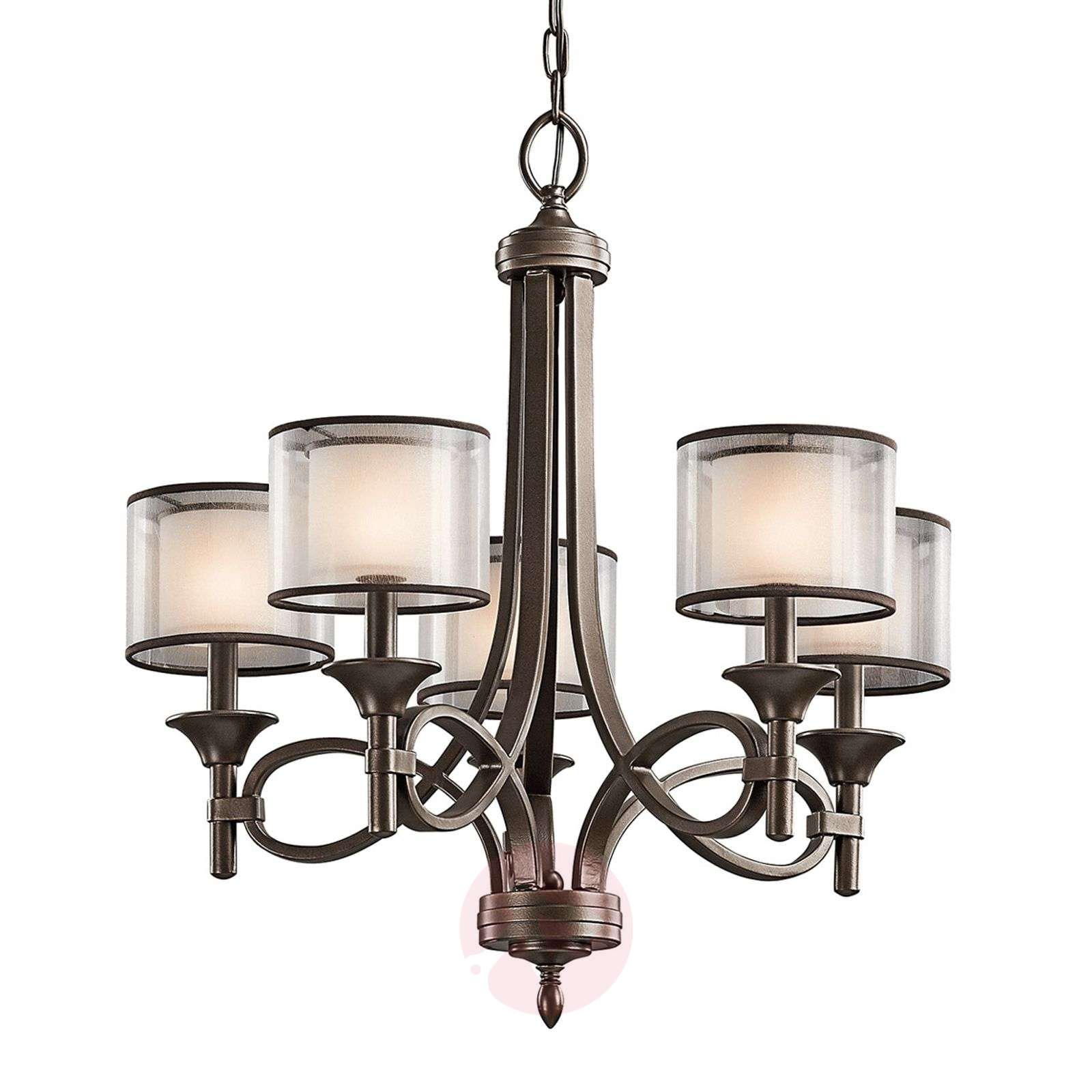 Podwójne klosze wieńczą ten 5-punktowy żyrandol Lacey Nowoczesne detale, takie jak podwójne klosze, przeplatają się w tym wyjątkowo zaprojektowanym żyrandolu ze znanymi elementami, takimi jak prosta podstawa i zaokrąglone ramiona. Dzięki temu powstaje styl, będący skrzyżowaniem antyku i nowoczesności, który nadaje wielu pomieszczeniom bardzo indywidualny charakter. Żarówki o mocy maksymalnej 60 watów sprawiają, ze opalowe klosze świecą, dzięki emitowane przez nie światło przechodzi przez zewnętrzny klosz o strukturze siatki i zyskuje delikatny blask. Żarówki nie są zawarte w zestawie (można je nabyć w dziale „Akcesoria dodatkowe”). Klasa efektywności energetycznej: A++