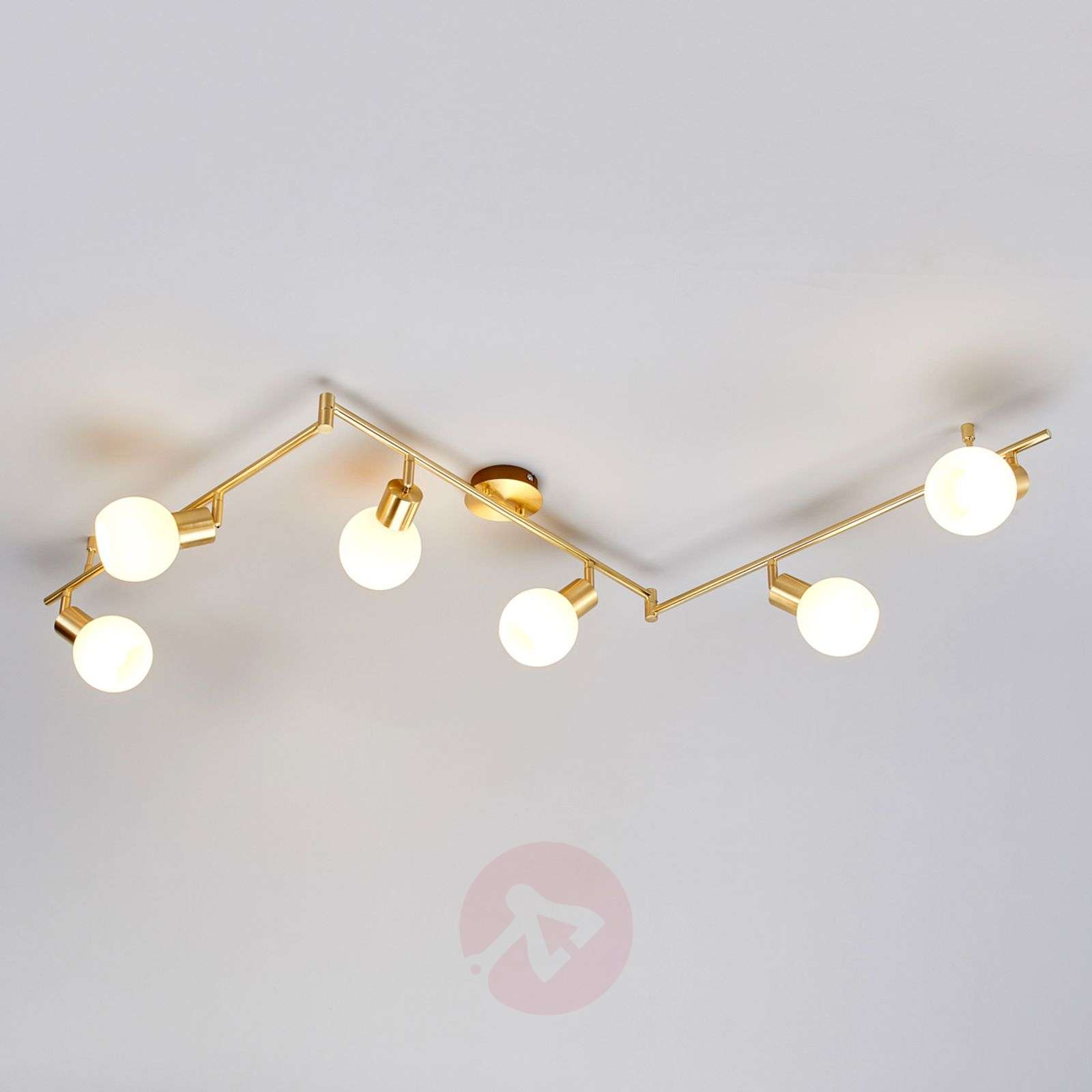 Lampa sufitowa Elaina z kloszami ze szkła opalowego i żarówkami LED E14 Białe szklane klosze tej 6-punktowej lampy sufitowej równomiernie rozpraszają światło, tworząc piękną poświatę. Dodatkowo regulowane głowice można dostosować w zależności od potrzeb. Dzięki tym właściwościom ELAINA stanowi uniwersalne źródło światła, które można stosować na wiele sposobów w różnych pomieszczeniach i aranżacjach. Dostawa obejmuje żarówki LED z trzonkiem E14 emitujące ciepłe białe światło oraz charakteryzujące się wysoką energooszczędnością i długim okresem użytkowania. W wykonaniu 6-punktowym nadaje się również do większych pomieszczeń, zapewniając optymalne oświetlenie. Klasa efektywności energetycznej: A+