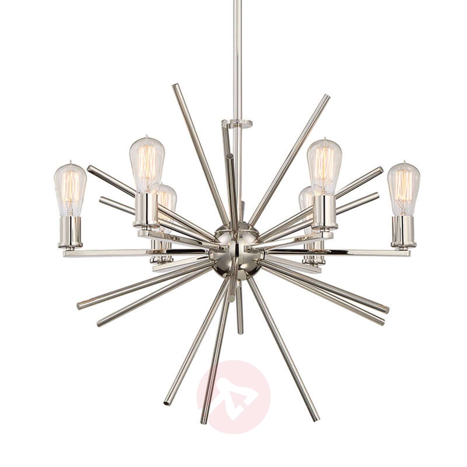 Odświętny żyrandol Carnegie, 6-punktowy Tak uroczysty jak sama nazwa, gdyż Carnegie to również nazwa światowej sławy sali koncertowej na Manhattanie w Nowym Jorku. Tymi właśnie słowami można opisać efekt świetlny pochodzący wprost z owego 6-punktowego żyrandola. Błyszczące metalowe wykończenie o nazwie imperial silver podkreśla wyjątkowość tej lampy. Carnegie, wyposażona w żarówki vintage, nadaje aranżacji pomieszczeń ostatnie szlify w celu zapewnienia nastrojowego oświetlenia. Klasa efektywności energetycznej: A++