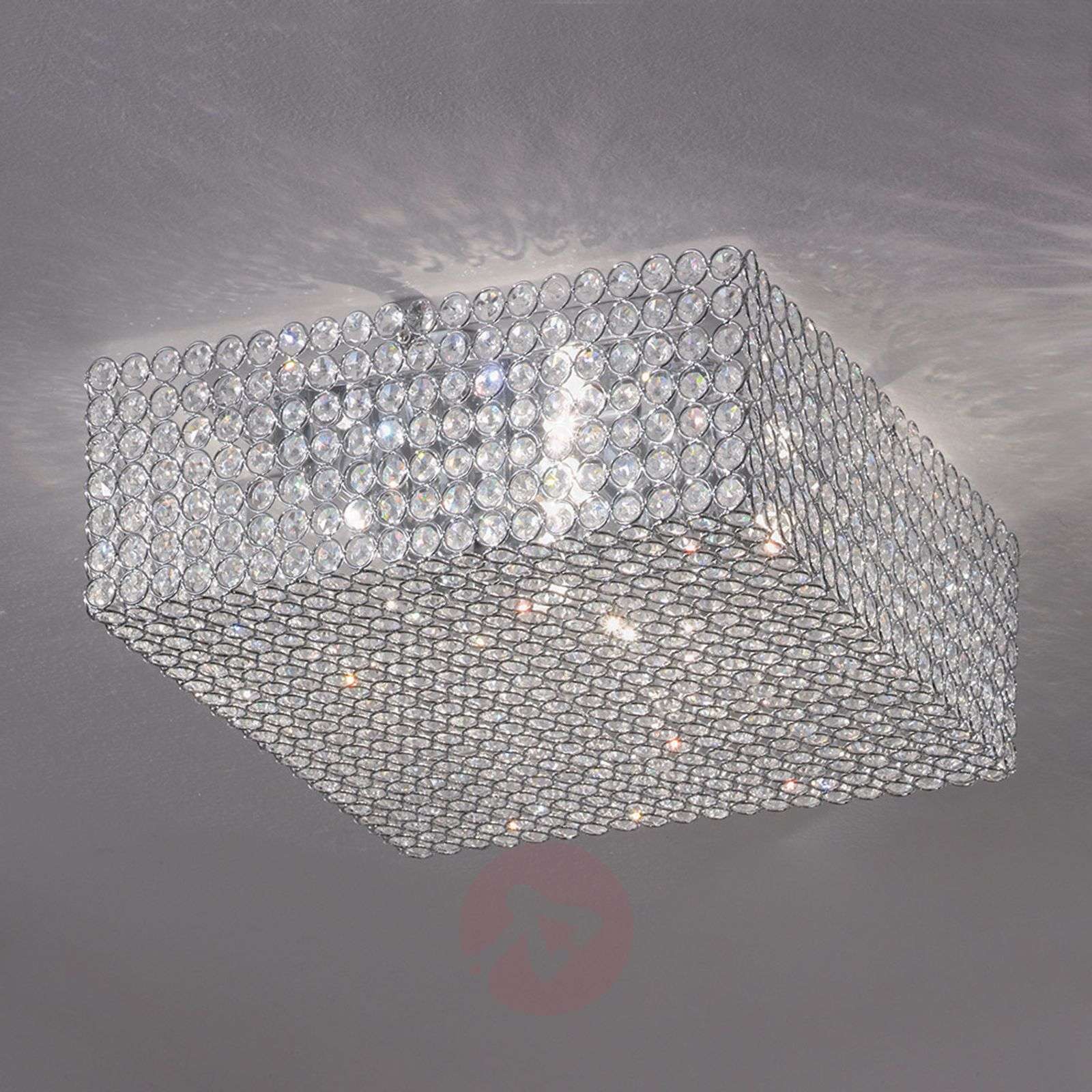 Migocząca lampa sufitowa AMAJA w kształcie prostopadłościanu Lampę sufitową AMAJA tworzą niezliczone kryształy K9 umieszczone w metalowych pierścieniach, które razem tworzą prostopadłościan. Emitowane przez umieszczoną wewnątrz żarówkę halogenową światło jest odbijane przez kryształy, dzięki czemu powstają piękne refleksy i efekty świetlne. AMAJA to połączenie wytworności klasycznych kryształowych lamp z nowoczesną formą, dzięki czemu odnajdzie się w różnych wnętrzach. Klasa efektywności energetycznej: A++