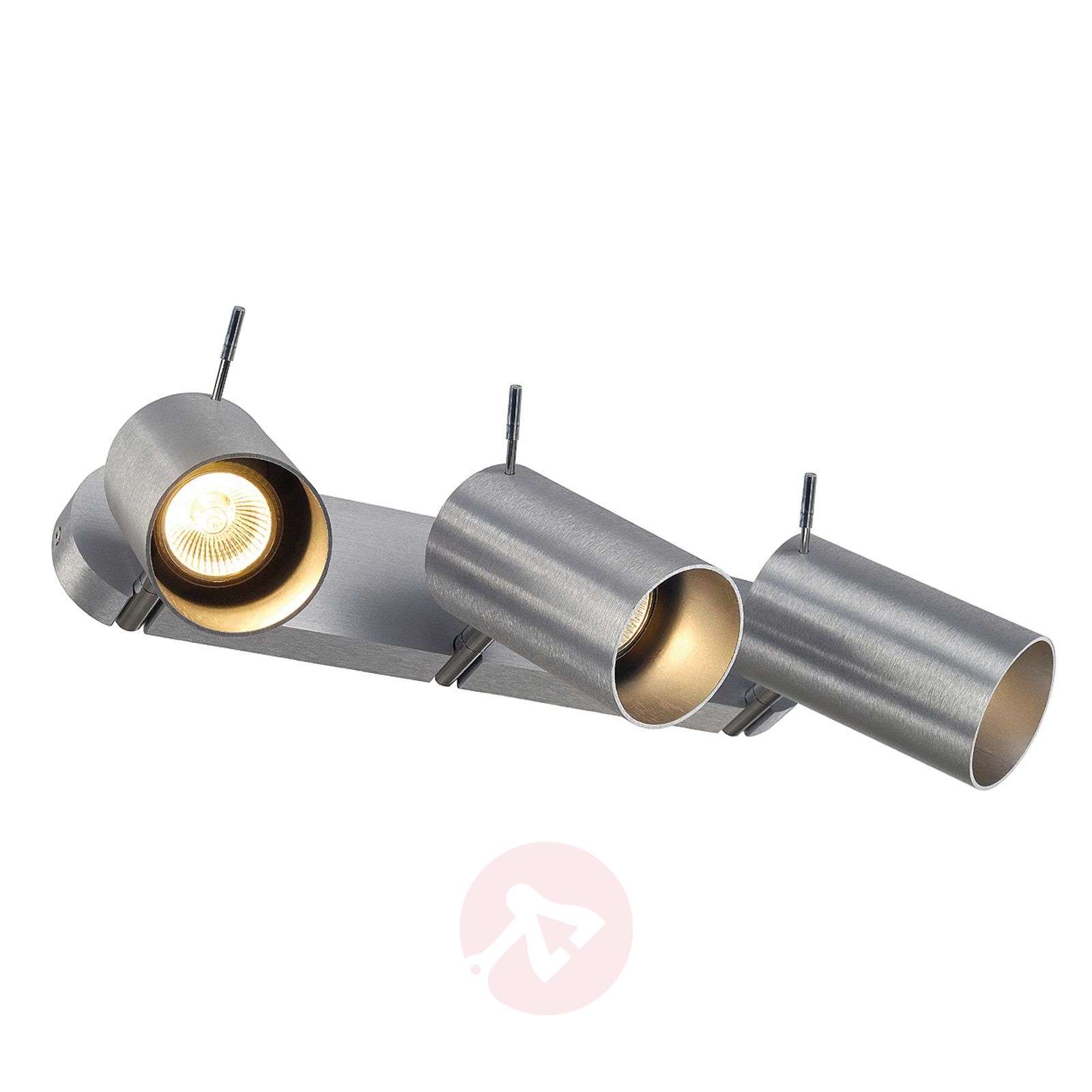 ASTO TUBE – aluminiowy trzypunktowy spot sufitowy z możliwością obracania i odchylania głowicy Umieszczony na suficie trzypunktowy spot ASTO TUBE stworzy we wnętrzu dobry nastrój. Został wykonany z wytrzymałego aluminium i składa się z trzech reflektorów o ruchomej konstrukcji umożliwiającą ich obracanie o 350° i odchylanie o 90°, dzięki czemu można dostosować padające światło do własnych potrzeb. Ponadczasowy design sprawia, że spot ASTO TUBE doskonale odnajdzie się we wnętrzach urządzonych w różnych stylach. Żarówka: 3 x 75 W GU10 (maks. Ø 6,4 cm, maks. dł. 8,1 cm). Dostawa nie obejmuje żarówek. Klasa efektywności energetycznej: A++