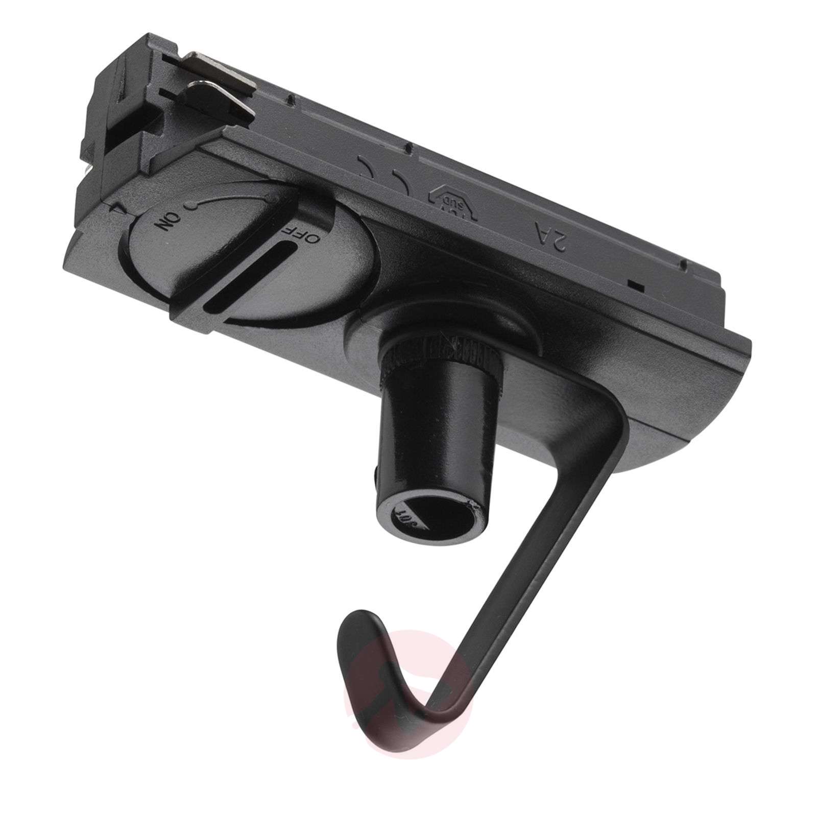 Czarny adapter wiszący do szyny prądowej Link Ten adapter wiszący służy do obsługi konwencjonalnych lamp wiszących poprzez system szyn 1-fazowych zamiast zasilania domu poprzez bezpośrednie podłączenie do sufitu. Adapter może być umieszczony w żądanej pozycji w szynie, aby zapewnić indywidualne rozwiązanie oświetleniowe. - maksymalne obciążenie: 4 kg - w zestawie demontowane odciążenie kablowe