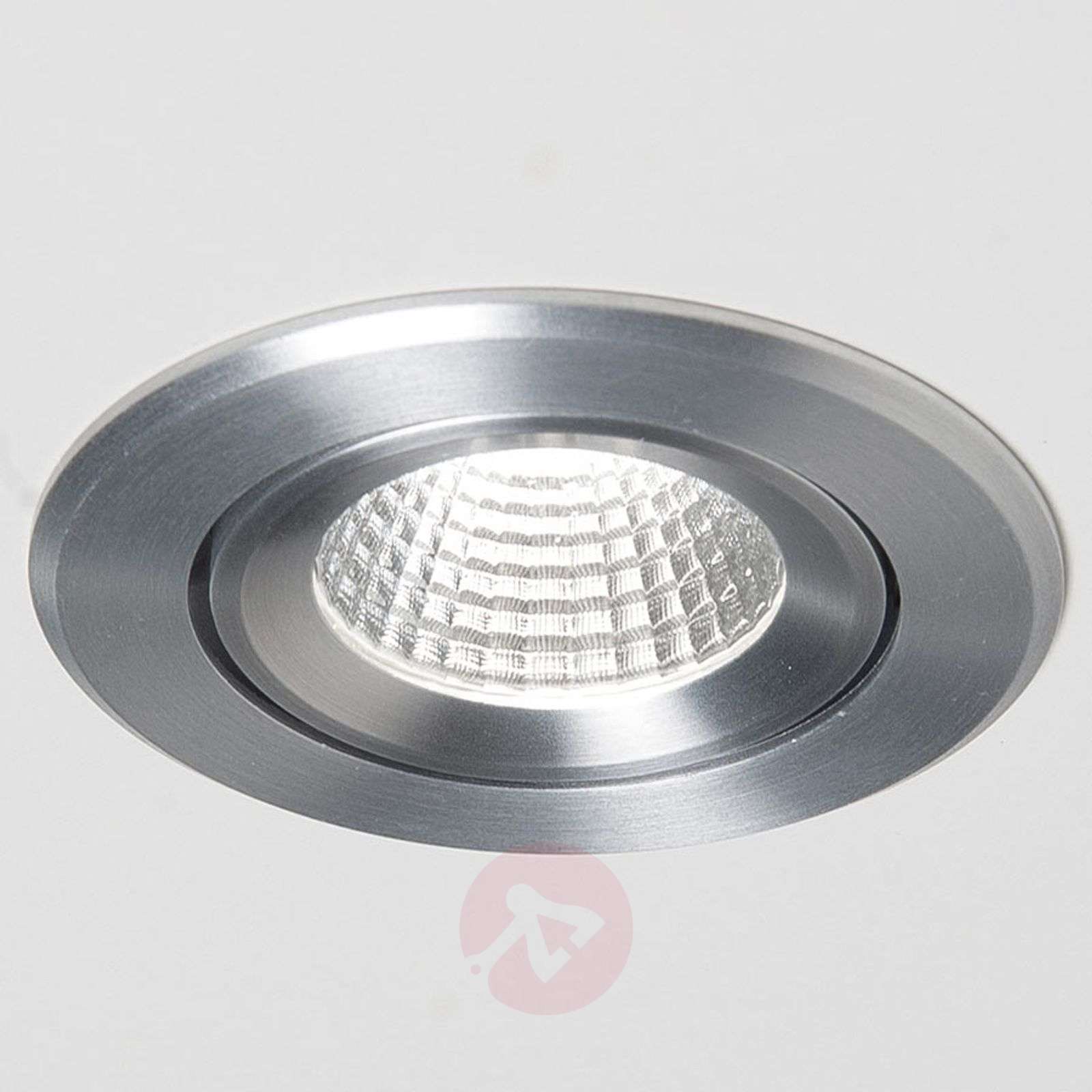 Agon Round - spot wpuszczany LED, szczotkowane aluminium Spot wpuszczany LED Agon Round, wykonany ze szczotkowanego aluminium i aluminiowego odlewu ciśnieniowego, jest źródłem światła dla obszarów prywatnych i komercyjnych, które zapewnia oświetlenie o barwie ciepłej bieli przy kącie świecenia 40°. - Reflektor odchylany o 30° - kompatybilny z puszką do montażu w betonie i przednią częścią Ø 6,8 cm - barwa światła: ciepła biel (3 000 K) - strumień świetlny: 600 lumenów - 250 mA Klasa efektywności energetycznej: A++