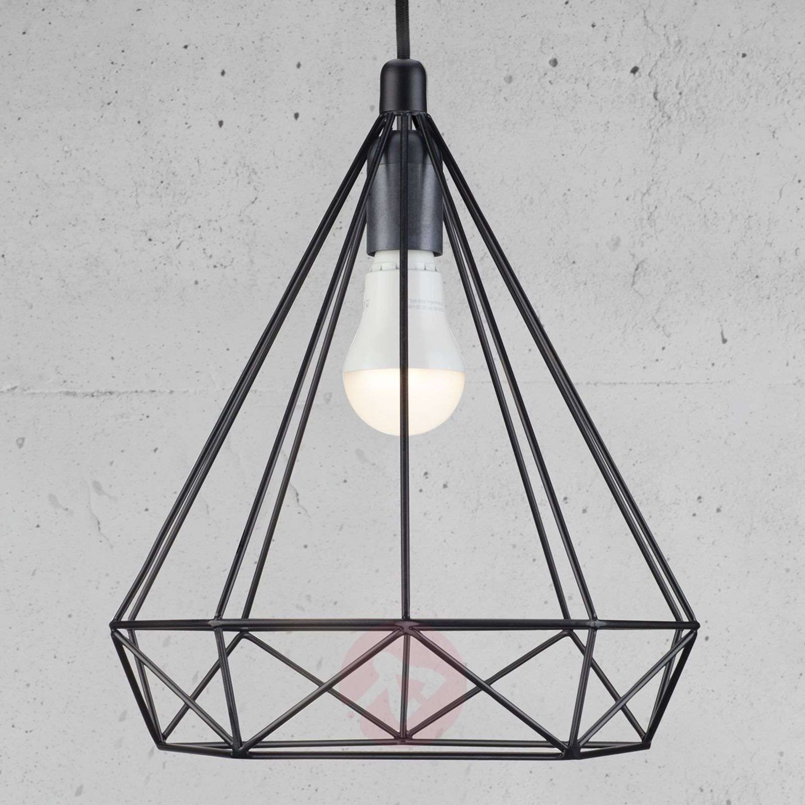 Efektowna lampa wisząca Aire w stylu vintage Składająca się z czarnych metalowych rozpórek lampa wisząca Aire swój optymalny efekt osiąga dopiero poprzez zastosowanie w niej żarówki, która przyciąga wzrok i pasuje do otwartego klosza. Szczególnie pięknie prezentuje się pokazana na zdjęciu lampa kulista, która może być dodatkowo lekko zabarwiona lub też stworzona w technice filamentowej i emitować do pomieszczenia wyjątkowe światło. Lampa wisząca Aire posiada kabel o długości aż 250 cm, dzięki czemu można ją stosować również w bardzo wysokich pomieszczeniach. Odpowiednie żarówki można zamówić w dziale „Akcesoria dodatkowe”. Klasa efektywności energetycznej: A++