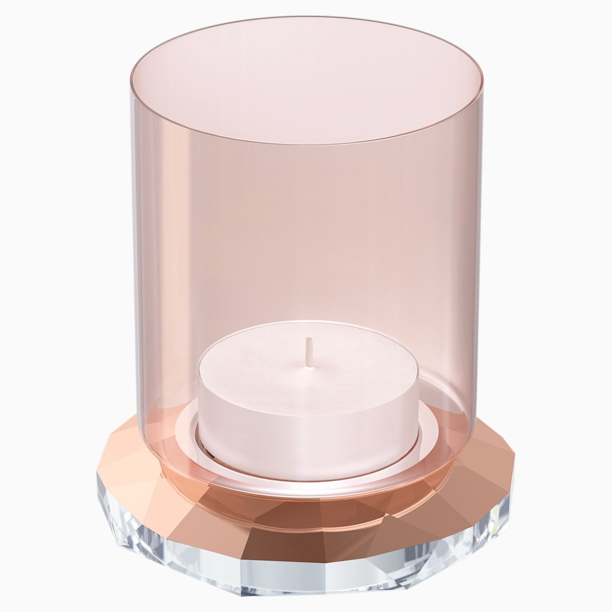 A stylish and elegant home accessory. The Allure Tea Light shines in rose-tone glass, which harmonizes perfectly with its crystal base in the shape of a ring. Expertly crafted with 78 facets, the ring is reversible and can be placed with the clear crystal or rose-tone coated side facing upwards, giving you a choice between two different effects: a strong sparkle or a chic metallic sheen. Decoration object. Not a toy. Not suitable for children under 15.