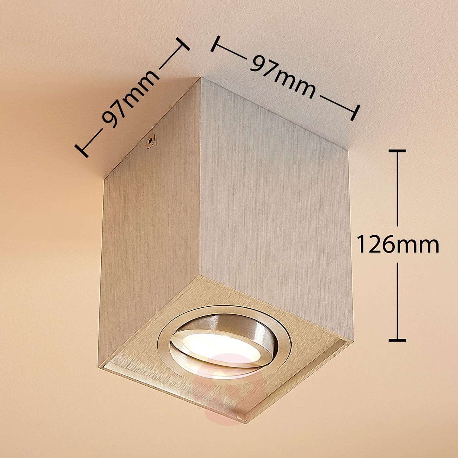 Nowoczesny aluminiowy spot Mikail o prostym designie z oprawką GU10 Ten aluminiowy spot sufitowy z oprawką GU10 posiada powierzchnię o naturalnym wykończeniu, co nadaje mu ponadczasowy wygląd. Prostokątny kształt sprawia, że zyskuje przyjemny, prosty wygląd i pasuje do wielu stylów wnętrz. Można więc stwierdzić, iż wygląd nie jest tu najważniejszy, ale funkcjonalność, czyli zapewnienie odpowiedniego oświetlenia. Umieszczony wewnątrz reflektor można regulować, dostosowując kierunek padania światła do własnych potrzeb. Klasa efektywności energetycznej: A++