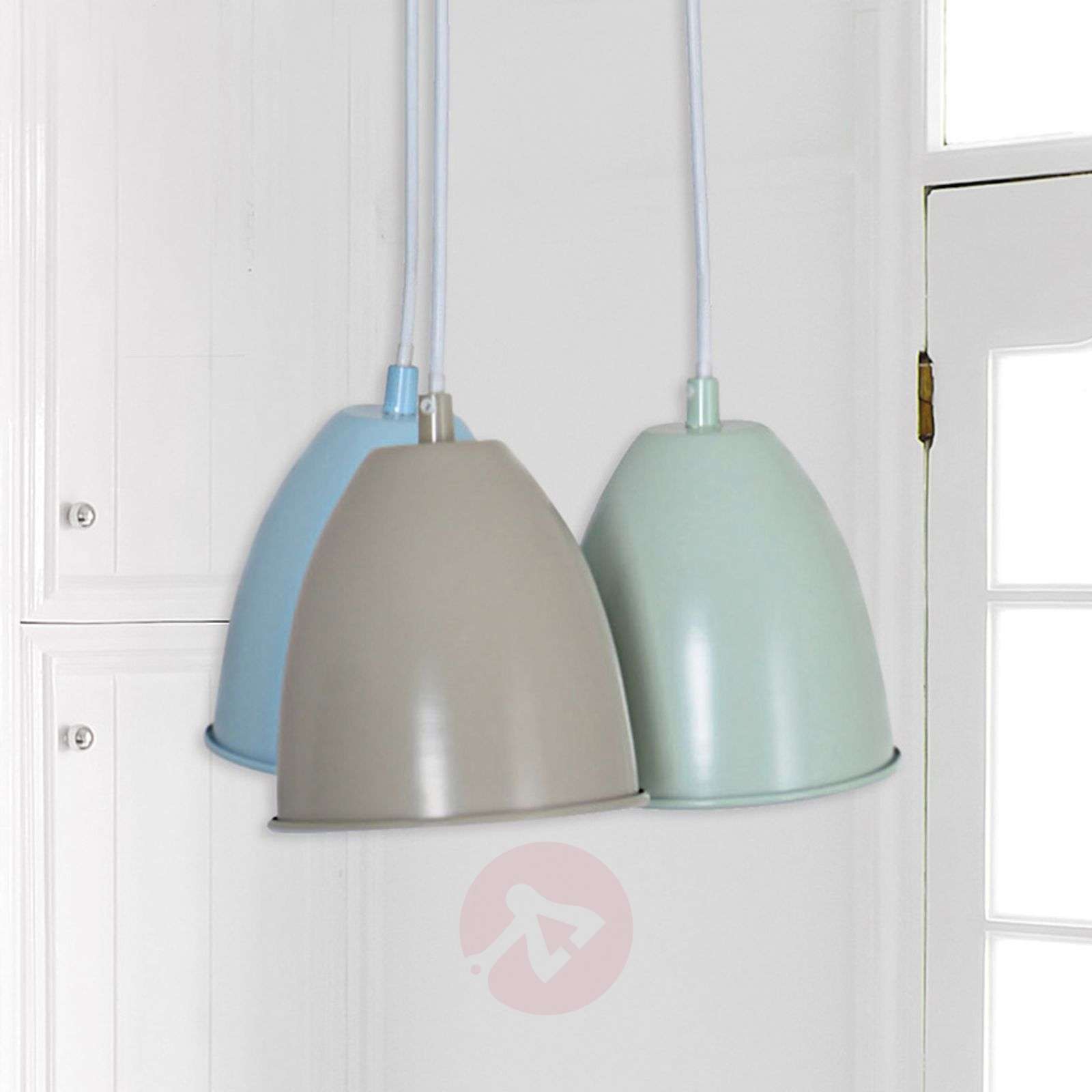 Wykonana z metalu trzypunktowa lampa wisząca Annett Każdy z metalowych kloszy lampy Annett ma inny kolor: jasnoniebieski, pastelowy zielony i taupe. Wszystkie świetnie się uzupełniają i działają orzeźwiająco, dlatego wprowadzą do wnętrza nieco koloru i je rozweselą. Ponieważ klosze lampy wiszącej Annett są wykonane z metalu, a wylot światła znajduje się na dole, lampa doskonale nadaje się do oświetlania stołów. Najlepiej lampa ta sprawdzi się nad stołem domowej kuchni, gdyż oprócz światła zapewni też dobrą atmosferę przy wspólnym posiłku, a dzięki swym kolorom dodatkowo je rozweseli! Klasa efektywności energetycznej: A++