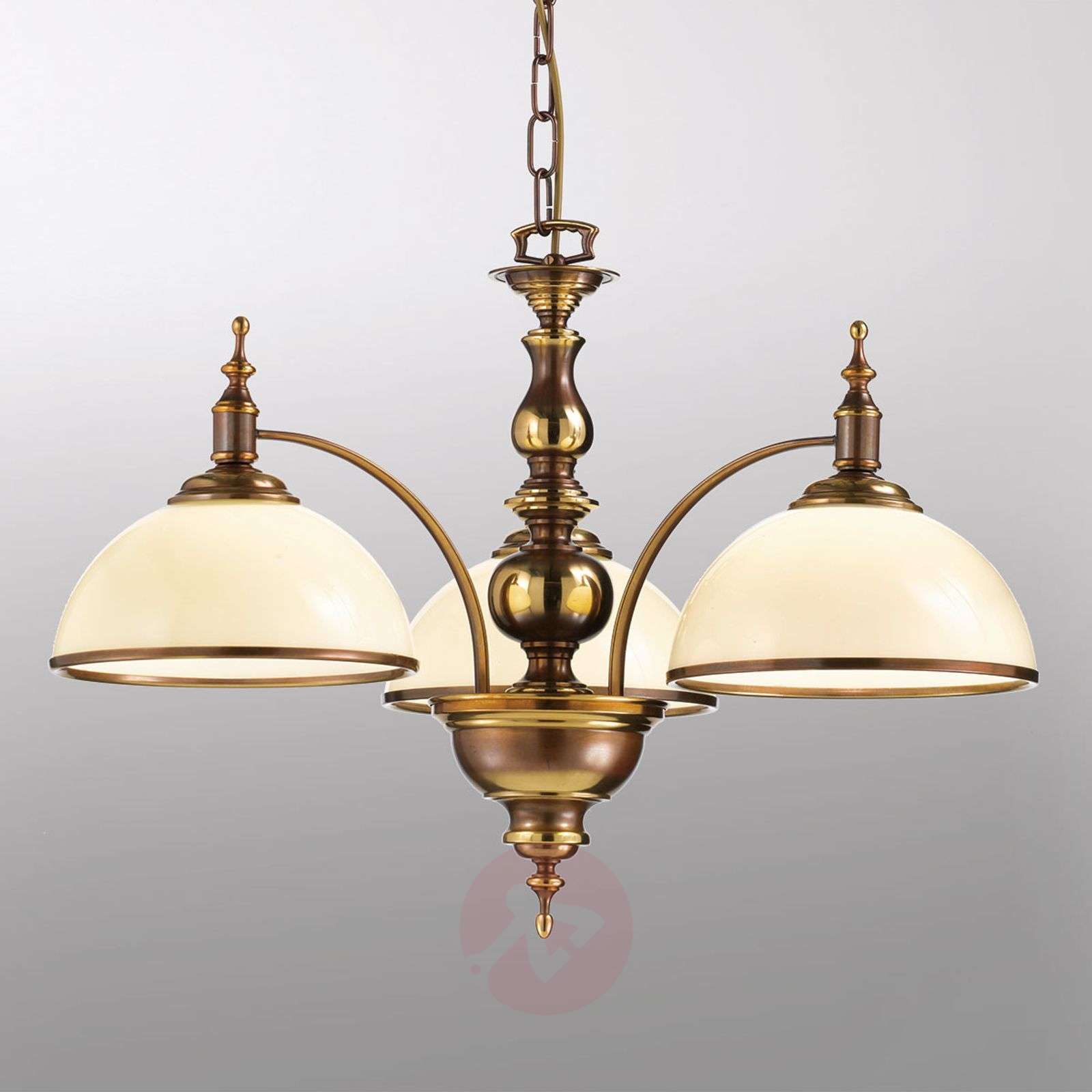 Lampa wisząca Corola z gustownym wyglądzie Dzięki kremowym kloszom światło włączonej lampy jest szczególnie ciepłe. Ogólny wygląd tej 3-punktowej lampy wiszącej jest nacechowany antycznym urokiem, elementy metalowe są bowiem wykonane w lekko nieregularnym odcieniu starego mosiądzu. Czy tę lampę wiszącą umieści się nad stołem w jadalni czy przy kanapie, zapewnia szczególnie przyjemne światło. Ekskluzywne produkty oświetleniowe tego producenta są produkowane ręcznie wyłącznie we Włoszech, gdzie starannie zwraca się uwagę na wybór wspaniałej jakości stosowanych materiałów. To odpowiada w dużej mierze dążeniu do nawiązywania do długiej tradycji weneckiej sztuki tworzenia oświetlenia oraz do wytwarzania produktów, które powstają z namiętnością i starannością i posiadają niewielkie cechy szczególne, dzięki którym stają się niepowtarzalne i nie do pomylenia. Klasa efektywności energetycznej: A++
