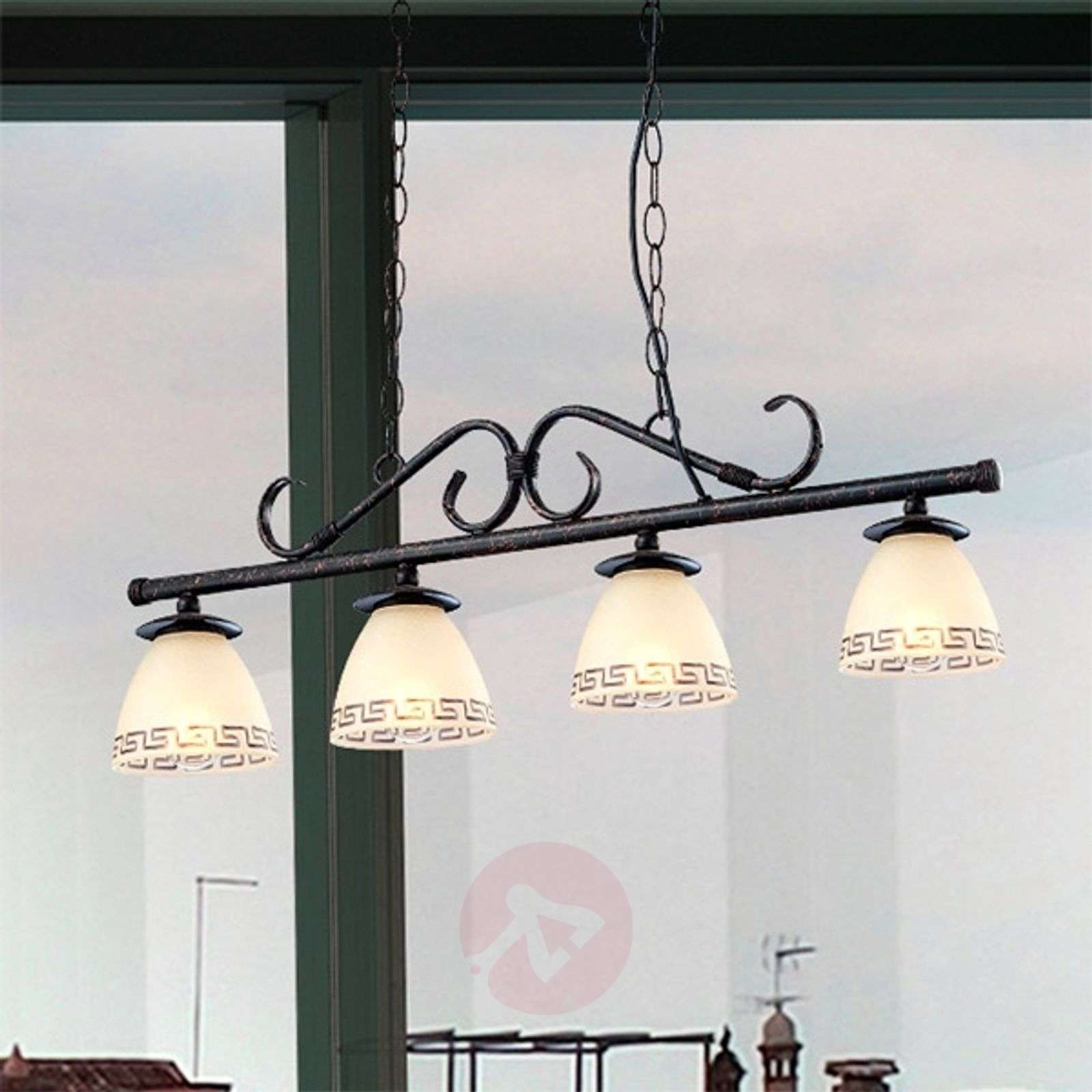 Lampa wisząca ROMA zapewni antyczny nastrój Minione czasy niosą ze sobą niezliczone ilości motywów, które także dzisiaj charakteryzują się fascynującymi rozwiązaniami. Brzegi kloszy tej serii lamp, noszących cechy antyku, mają dekorowane brzegi, a zastosowany tutaj motyw kojarzy się bezpośrednio ze starożytną Grecją lub Rzymem. Dzięki temu lampy z serii ROMA mają niezwykle autentyczny charakter, przy czym ich stelaż także ma wyraźne cechy antyku dzięki kolorystycznej mieszance czerni i miedzi. Połączenie wszystkich elementów składających się na lampę sufitową ROMA stanowi ucztę dla oczu nie tylko tych, których fascynują minione epoki. Ta seria lamp przekonuje mianowicie dodatkowo przyjemnym światłem, zapewniającym przytulną atmosferę w pomieszczeniach mieszkalnych. Żarówka nie jest objęta zakresem dostawy. Klasa efektywności energetycznej: A++