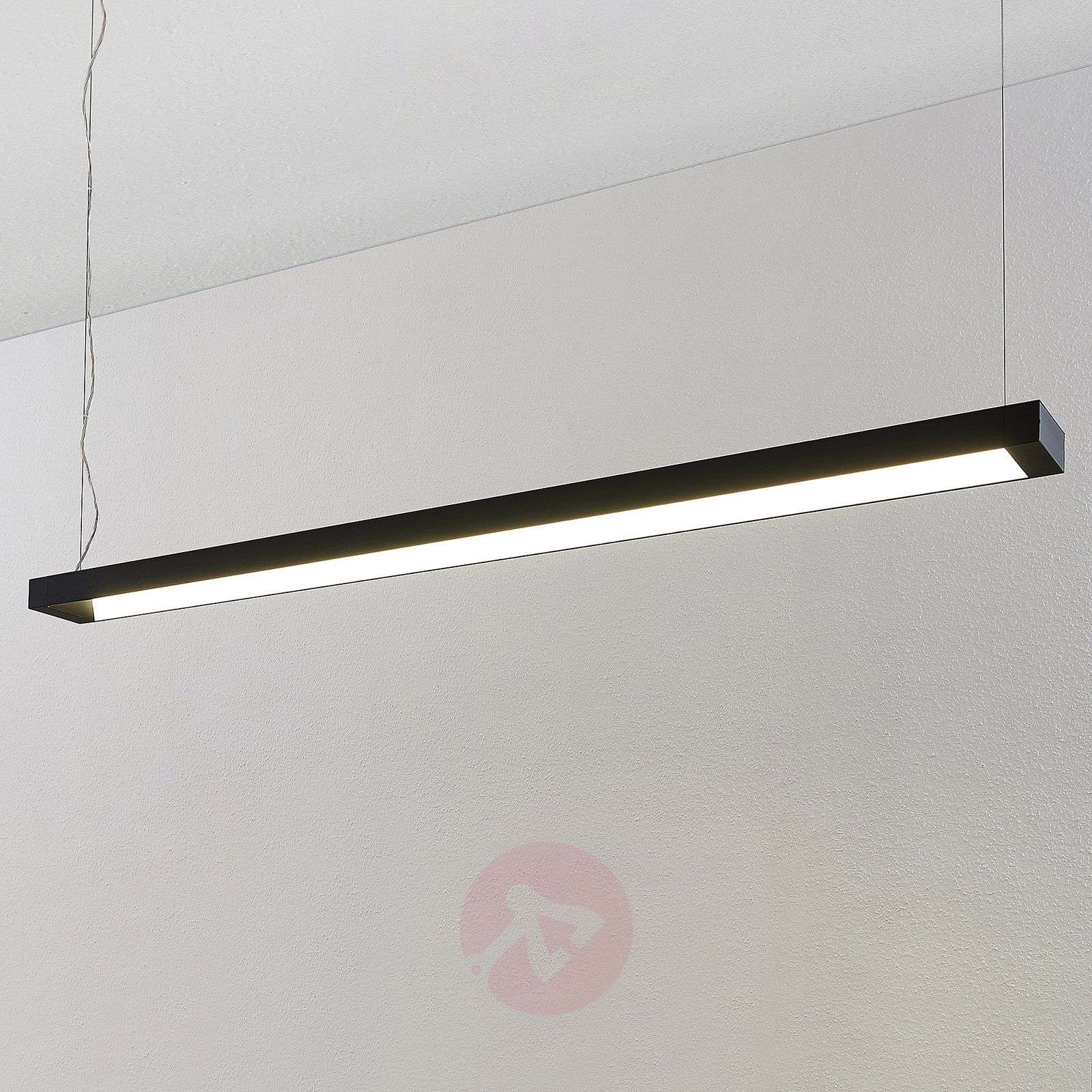 Lampa wisząca biurowa LED Cuna w kształcie prostokąta i z czarną powierzchnią Ta lampa wisząca z jasnymi, energooszczędnymi diodami LED idealnie nadaje się do oświetlania powierzchni stołu w miejscu pracy. Światło o barwie uniwersalnej bieli umożliwia skoncentrowaną pracę przez długi czas. Rama klosza ma kątowy kształt i jest wykonana z aluminium o czarnej, ponadczasowej powierzchni. Kąt świecenia światła wynosi 120 stopni. Dane techniczne: - kąt padania światła 120° - światło o barwie uniwersalnej bieli - odporność na uderzenia IK03 - SDCM - możliwość łączenia przelotowego Klasa efektywności energetycznej: A+