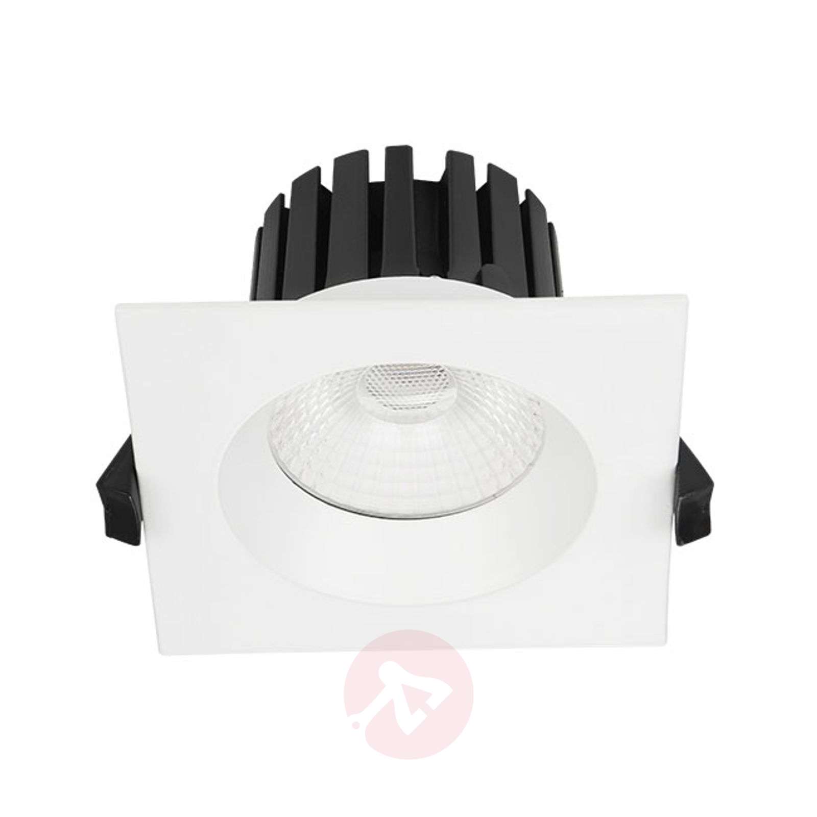 Ściemniany reflektor wpuszczany LED Urdin z aluminium Biały i kątowy reflektor wpuszczany LED Urdin jest wykonany z wytrzymałego aluminium. Dzięki stopniowi ochrony IP65 reflektor nadaje się również po zamontowaniu do pomieszczeń wilgotnych lub na zewnątrz, dzięki czemu może być stosowany w łazienkach, a także np. na zewnątrz pod zadaszeniem. Światło downlight świeci przyjemną barwą ciepłej bieli i jest emitowane pod kątem 60° w dół. Dzięki temu Urdin nadaje się jako reflektor wpuszczany wszędzie tam, gdzie mają być oświetlane selektywne obszary lub narożniki. Również oświetlanie określonych obiektów lub towarów w obszarze komercyjnym, na przykład w gastronomii lub w handlu detalicznym, możliwe jest z zastosowaniem ściemnianego downlight Urdin. Klasa efektywności energetycznej: A+