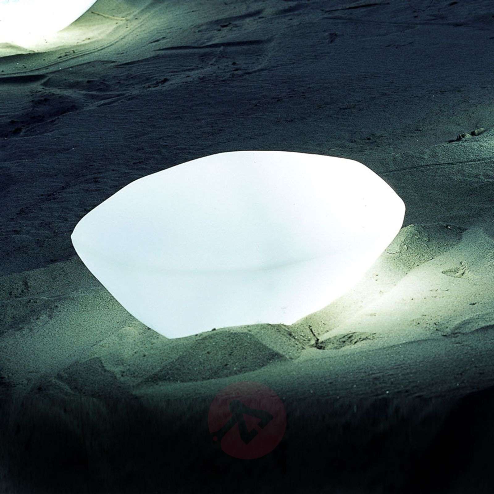Lampa dekoracyjna STONES do artystycznego oświetlenia ogrodów i tarasów Lampa STONES jest wręcz doskonała w swym naturalnym kształcie kamienia. To artystyczny element dekoracyjny, który zawdzięcza swój urok właśnie naturze, którą został zainspirowany. Korpus lampy został wykonany z białego polietylenu i dzięki stopniowi ochrony IP65 jest odporny na działanie wszelkich warunków atmosferycznych. Bez względu na to, gdzie zostanie umieszczona – czy w ogrodzie, na tarasie czy też w dużej łazience – STONES zapewni wszędzie łagodne, rozproszone światło. Żarówka w zestawie. Klasa efektywności energetycznej: E