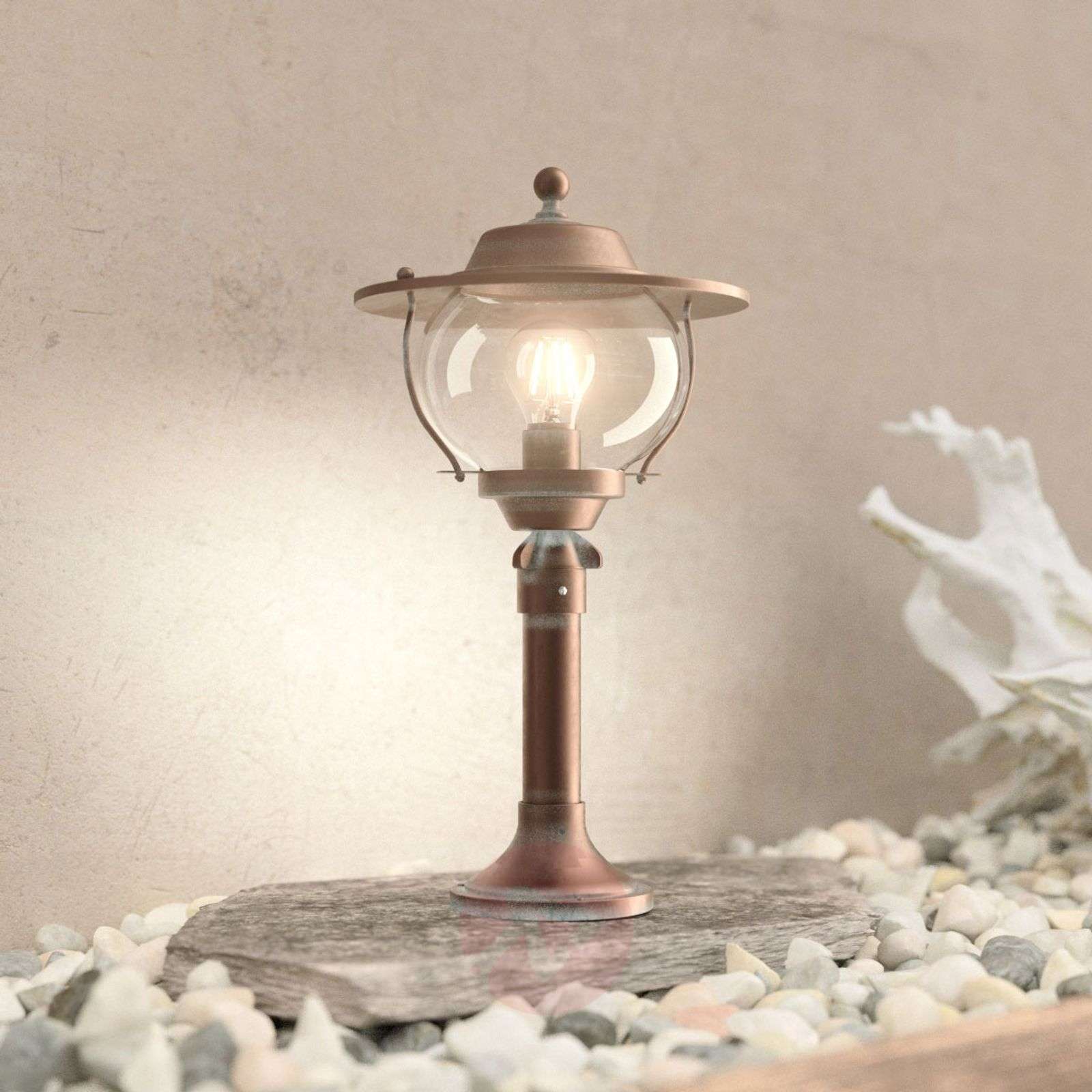 Lampa na cokół Adessora stanowi stylowe oświetlenie terenu zewnętrznego Ta piękna lampa na cokół z pękatym, przezroczystym kloszem, wielkopowierzchniowo emitującym jasne światło, jest doskonałym wyborem do konstrukcji ogrodowych w stylu antycznym lub wiejsko-rustykalnym. Pozwala na bezpieczne oświetlenie ograniczających elementów krajobrazu, np. rabatek, murów czy schodów. Konstrukcja wykonana z antycznego mosiądzu również urzeka swoim wyglądem, a dodatkowo ochroną antykorozyjną, zabezpieczającą przed szkodliwym działaniem wody morskiej. Dzięki temu Adessora doskonale sprawdza się jako wyposażenie posiadłości na wybrzeżu. Klasa efektywności energetycznej: A++