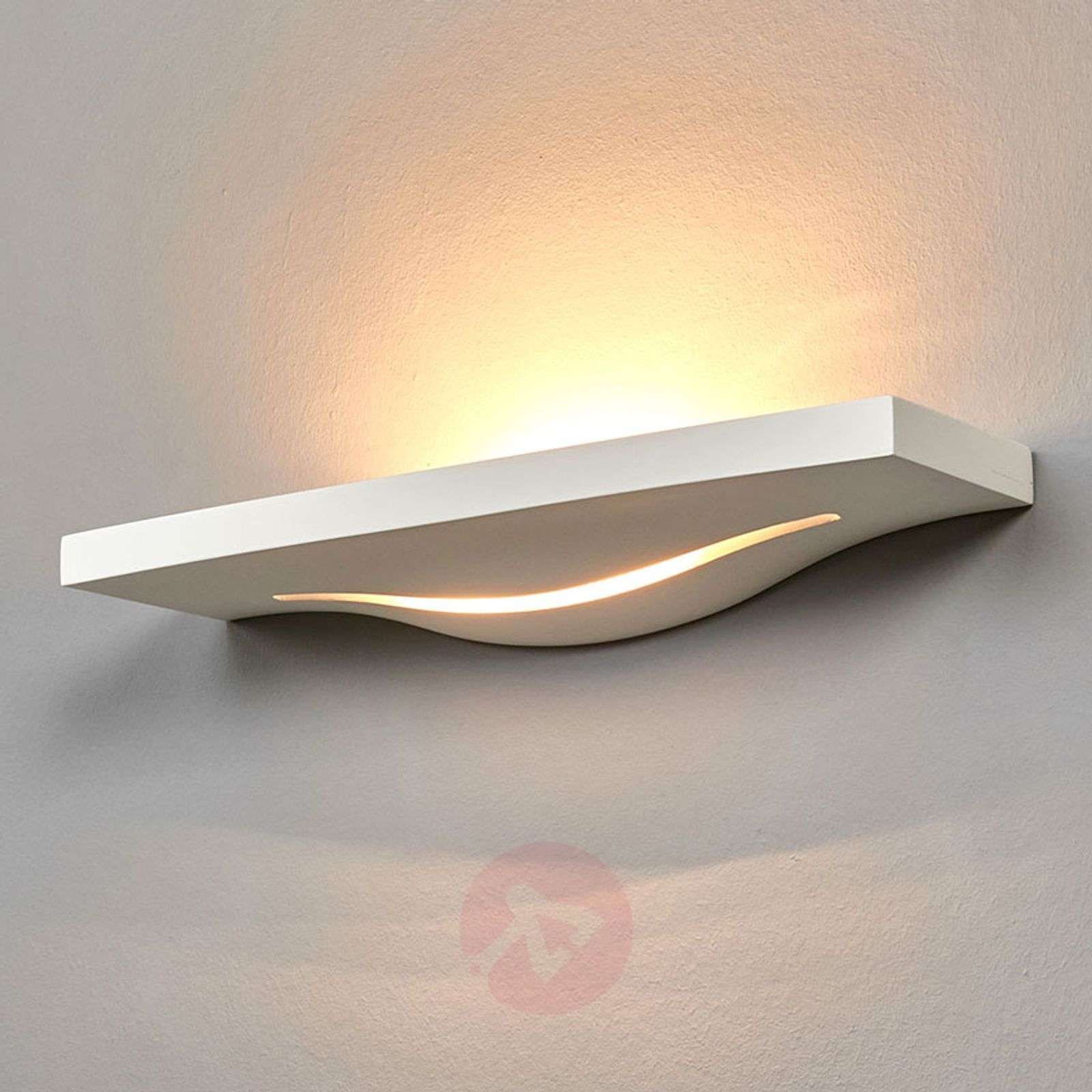 Lilia – gipsowa lampa oświetlająca ścianę o białej powierzchni i płaskiej formie Lampy oświetlające ścianę cieszą się, tak jak lampy oświetlające sufit, dużą popularnością. Emitowane przez nie światło nie przenika do wnętrza bezpośrednio, lecz pośrednio w postaci płynnej, przytulnej poświaty, która tworzy miłą atmosferę. Za pomocą takiej lampy można łagodnie oświetlić korytarz, sypialnię, ale również salon, czyniąc z tych pomieszczeń niezwykle przytulne wnętrza. Lampa oświetlająca ścianę nie pełni zatem roli oświetlenia głównego. Można ją włączyć zgodnie z preferencjami. Sprawdzi się jako przytulne oświetlenie akcentowe zwłaszcza wieczorem, gdy jasne światło jest zbyt mocne. Gipsowa powierzchnia lampy Lilia ma tę zaletę, że można ją pomalować. Oznacza to, że na przykład po przemalowaniu pokoju można dostosować kolor lampy do koloru ścian, gdy została resztka farby. Wtedy lampa stanie się nierozerwalną częścią wnętrza. Klasa efektywności energetycznej: A++