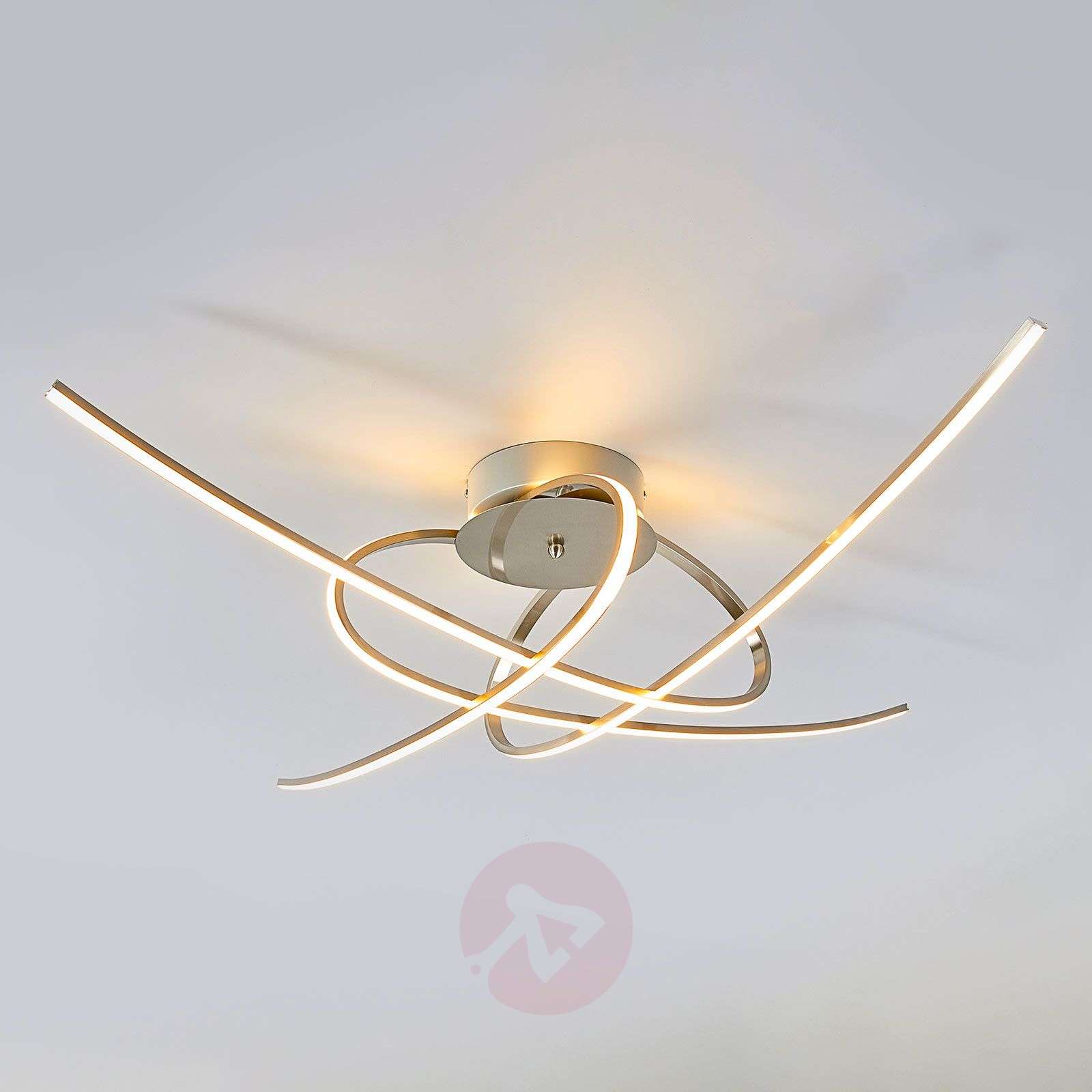 Emitująca światło o barwie ciepłej bieli lampa sufitowa LED Emylia o łukowatej formie Za sprawą podstawy z satynowanego niklu i taśm LED Emylia wydaje się bardzo nowoczesna i stanowi jedno z najmodniejszych źródeł światła. Wygięta forma nadaje lampie wrażenie dużej dynamiki i zapewnia piękny wygląd. Barwa światła ciepłej bieli sprawia, że lampa sufitowa LED Emylia świetnie nadaje się do oświetlania przestrzeni mieszkalnej, a dodatkowo gwarantuje dużą moc światła, dzięki czemu można ją wykorzystywać na potrzeby oświetlenia ogólnego pomieszczeń. Klasa efektywności energetycznej: A+