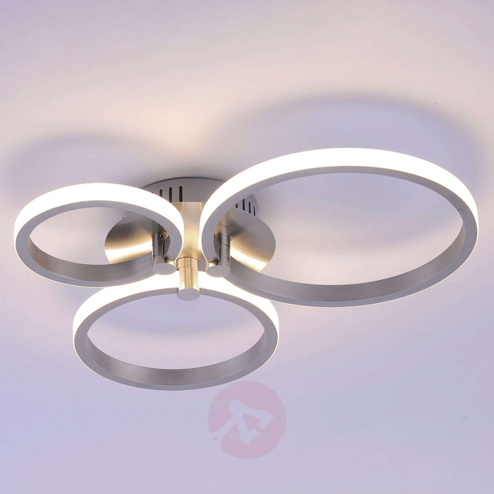 Futurystyczna lampa sufitowa LED Johanna ze stali Lampa sufitowa LED Johanna zachwyca stylowym, nowoczesnym wzornictwem. Trzy pierścienie zapewniają idealne światło w każdym wnętrzu, niezależnie od tego, czy jest utrzymane w stylu tradycyjnym, nowoczesnym, czy artystycznym. Koło to najbardziej harmonijna ze wszystkich form. Prosty, elegancki wygląd lampy pasuje do każdej, zarówno dynamicznej, jak i surowej koncepcji wyposażenia wnętrz. Lampa jest zamocowana na suficie za pomocą okrągłego cokołu, do którego przytwierdzone są trzy świecące pierścienie o różnej wielkości. Światło wydobywa się z bocznych krawędzi pierścieni. Trzy futurystyczne pierścienie emitują przy tym do pomieszczenia wyjątkowo ciepłe światło. Klasa efektywności energetycznej: A+