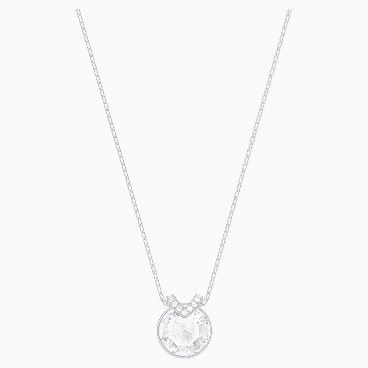 Add a subtle touch of sparkle with this simple, elegant, and feminine rhodium-plated pendant. Showcasing a beautiful round clear crystal, accented with a hint of pavé, it complements any outfit and will take you from day to night in perfect style. The pendant comes on a chain.