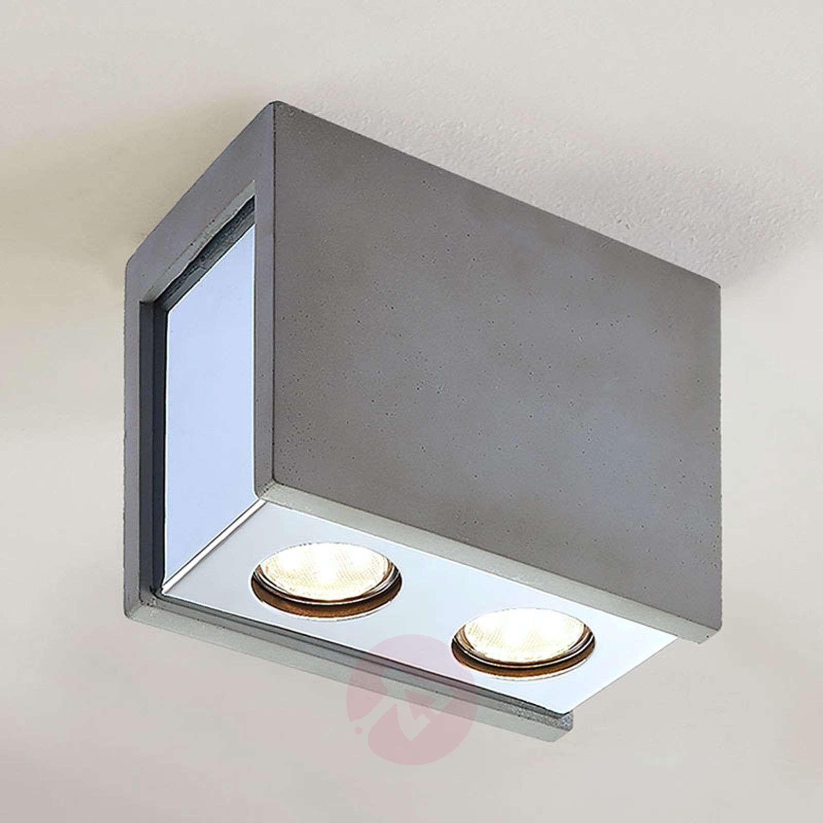 2-punktowa lampa sufitowa Freyja z elementami chromowanymi Freyja jest atrakcyjną lampą w stylu industrialnym, która integruje beton z wzornictwem oprawy, a także posiada chromowane powierzchnie. Lampa sufitowa wyróżnia się techniczną estetyką, zwłaszcza że wytwarza światło punktowe za pomocą opraw GU10, które są przeznaczone do pracy z żarówkami LED. Dzięki temu reflektor doskonale sprawdzi się w kuchni lub na korytarzu, a także nadaje się do oświetlenia obiektów komercyjnych. Klasa efektywności energetycznej: A++