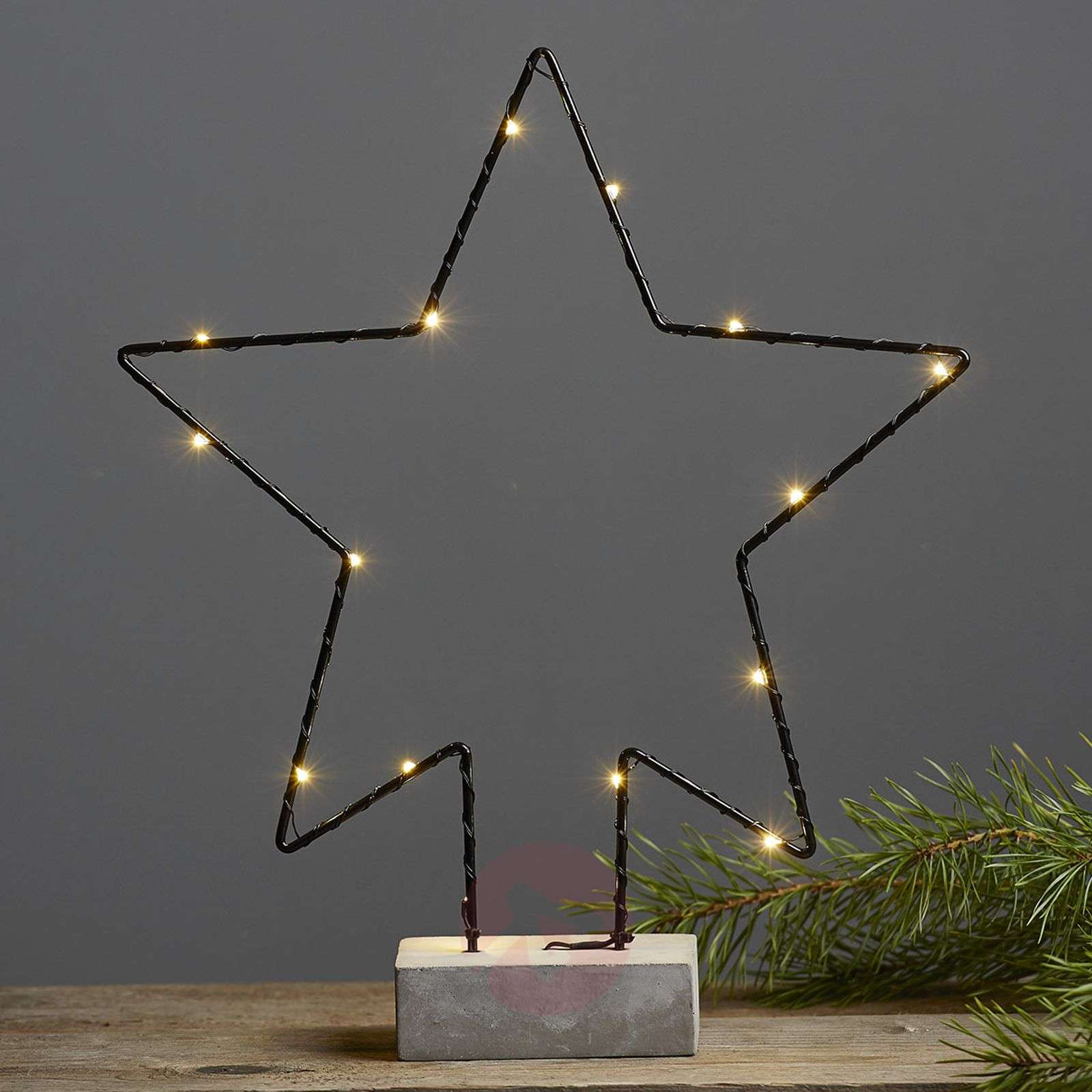 Oświetlenie dekoracyjne LED Cemmy Nowoczesna dekoracja bożonarodzeniowa może stać się faktem dzięki oświetleniu dekoracyjnemu LED Cemmy, które wyposażone jest w modną betonową podstawę. Świąteczne motywy i kontury są tu nastrojowo oświetlone przez diody LED. Cemmy może być używana w dowolnym miejscu wewnątrz pomieszczeń i nie wymaga zasilania z sieci. Do pracy lampy wykorzystywane są dwie baterie AA, które można nabyć oddzielnie w dziale „Akcesoria dodatkowe”. Nie wchodzą one w zakres dostawy elementu dekoracyjnego. Wyposażona w timer: 6 godzin załączenia/18 godzin wyłączenia.