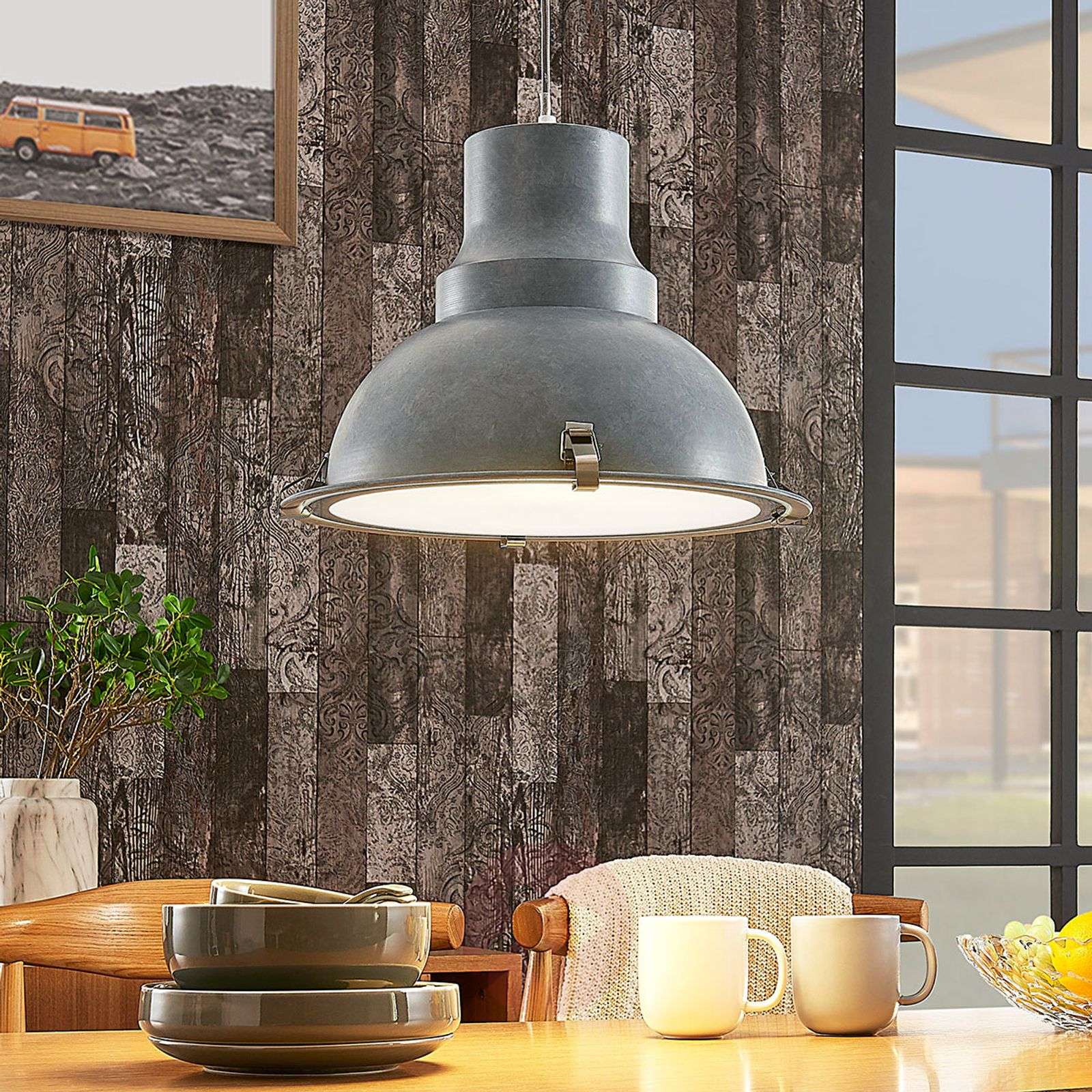 Percival – metalowa lampa wisząca o industrialnym wyglądzie Metalowe lampy wiszące od pewnego czasu przeżywają renesans i są szczególnie popularne w kuchni lub nad stołem w jadalni, ponieważ metal jest materiałem nieprzezroczystym, a światło, w zależności od rodzaju klosza, jest następnie kierowane przede wszystkim w dół, w kierunku powierzchni stołu. Oznacza to zminimalizowanie efektu oślepienia i dobrą jasność światła w okolicach stołu. W przypadku metalowej lampy wiszącej Percival nie można zaprzeczyć, że jej industrialny wygląd jest charakterystyczny, ponieważ wskazują na to zarówno kształt jak i szarobetonowa powierzchnia lampy. Klasa efektywności energetycznej: A++