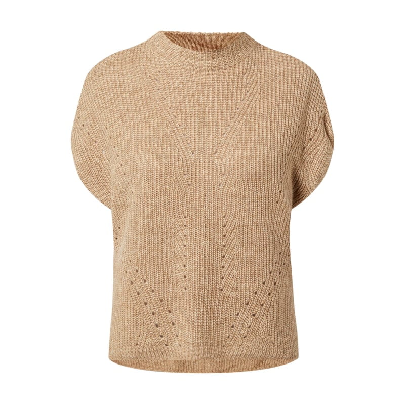 Bezrękawnik damski s.Oliver RED LABEL, Mieszanka bawełny z dodatkiem wełny , Luźny krój , Prążkowana faktura , Perforowanie , Stójka, Krótkie, ukośnie skrojone rękawy , Długość tyłu w rozmiarze 36: 61 cm
