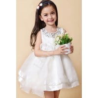 Biała sukienka dla dziewczynki z kryształkami