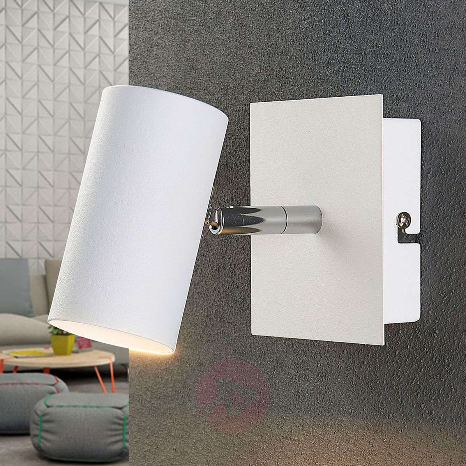 Spot LED Iluk, wykonany z białego metalu Ten spot LED można montować na ścianie lub suficie i prezentuje się jako subtelne, ale nowoczesne źródło światła. Iluk jest wykonany w całości z metalu, a jego klosz ma kształt cylindryczny. Przegub łączy go z resztą lampy i umożliwia ustawienie wiązki światła według potrzeb. Powierzchnia metalowa ma białe wykończenie, które wygląda bardzo ponadczasowo. Klasa efektywności energetycznej: A++