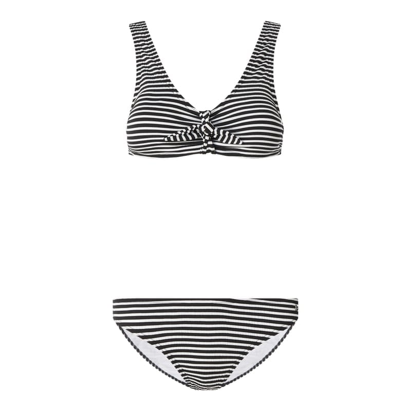 Bikini damskie s.Oliver RED LABEL, Mieszanka materiałów z dodatkiem streczu, Wzór w paski, Top bikini z szerokimi ramiączkami, Ozdobny węzeł, Zapięcie na haftkę z tyłu, Figi bikini z wysokim wycięciem, Elastyczny pas