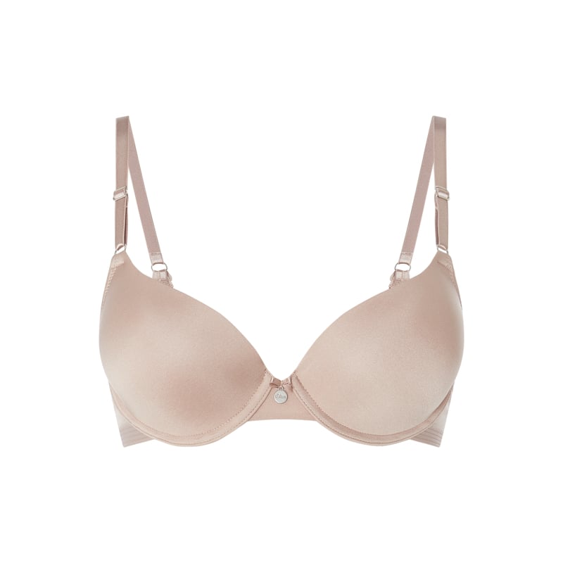 Biustonosz koszulkowy damski s.Oliver RED LABEL, Mieszanka materiałów z dodatkiem streczu , Dekolt w kształcie serca , Mikrowłókno , Watowane miseczki z fiszbinami , Regulowane ramiączka , Przywieszka z logo , Zapięcie na haftkę