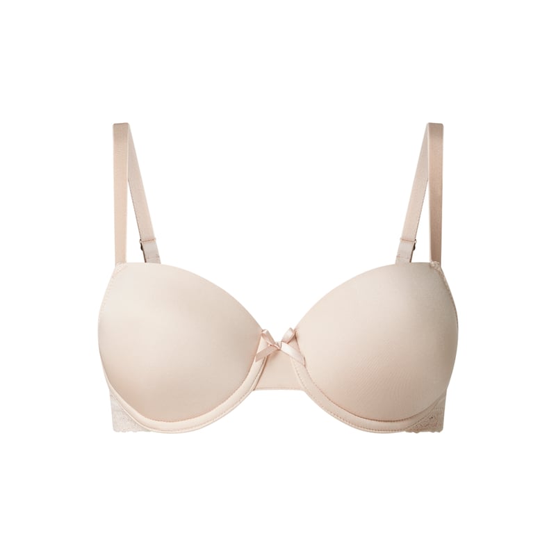 Biustonosz koszulkowy damski s.Oliver RED LABEL, Mikrowłókno, Formowane, watowane miseczki , Fiszbina, Cienkie ramiączka, Zapięcie na haftkę, Ozdobna kokarda