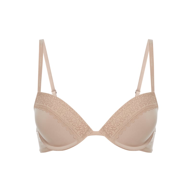 Biustonosz push up damski Calvin Klein Underwear, Mieszanka materiałów z dodatkiem streczu, Watowane miseczki, Wbudowane fiszbiny, Regulowane ramiączka, Obszycie koronką, Zapięcie na haftkę z tyłu