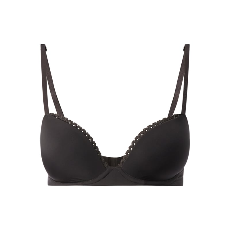 Biustonosz push up damski Calvin Klein Underwear, Elastyczny materiał , Dekolt w kształcie serca , Wzmacniane, watowane miseczki, Regulowane ramiączka , Ozdobne tasiemki , Zapięcie na haftkę z tyłu