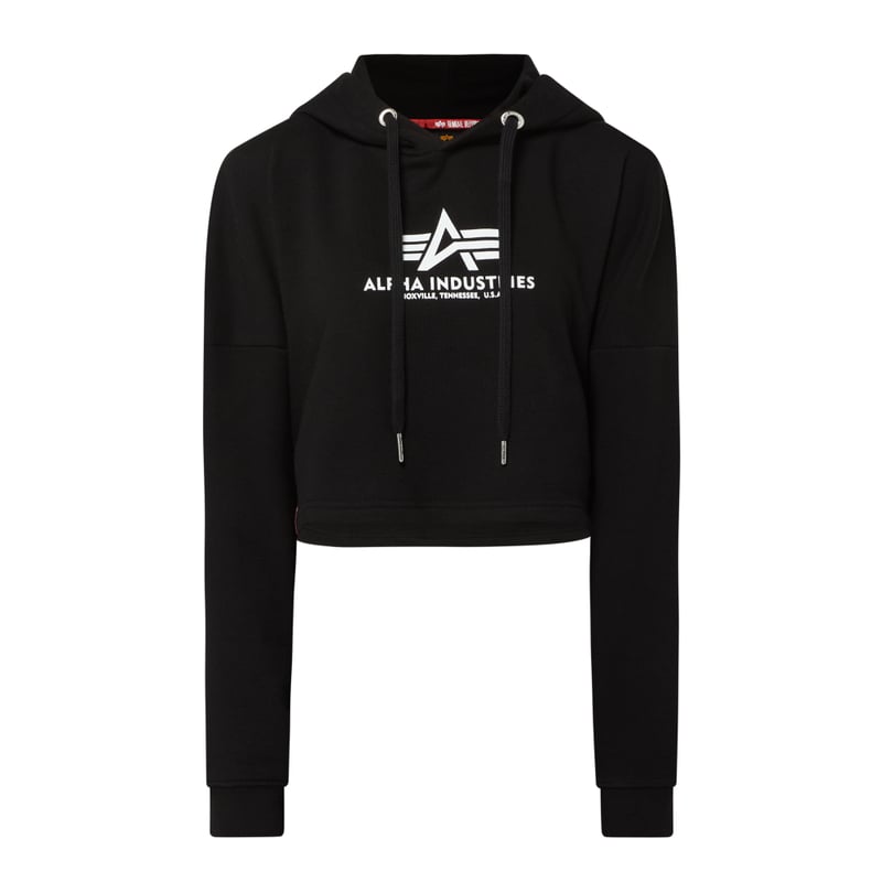 Bluza z kapturem damska Alpha Industries, Mieszanka bawełny , Oversized, Krój krótki, Kaptur z tunelem, Obniżone ramiona, Zakończenia rękawów z prążkowanego ściągacza, Logo, Długość tyłu w rozmiarze S: 41,5 cm
