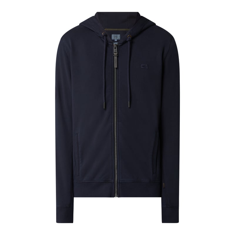 Bluza rozpinana męska camel active, Czysta bawełna, Prosty krój, Kaptur z tunelem, Zamek błyskawiczny, Wpuszczane kieszenie, Logo, Prążkowane wykończenia, Długość tyłu w rozmiarze M: 72 cm, Długość rękawa w rozmiarze M: 72 cm